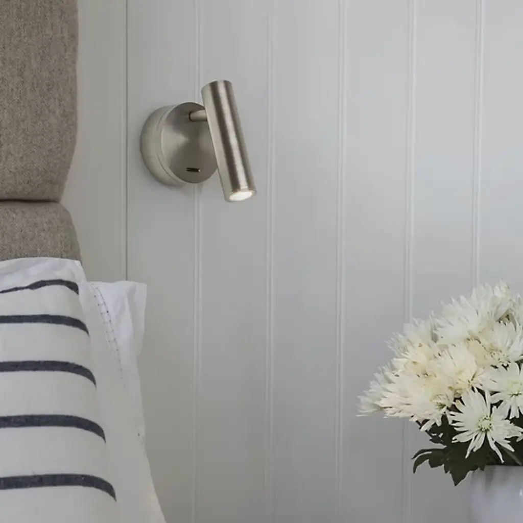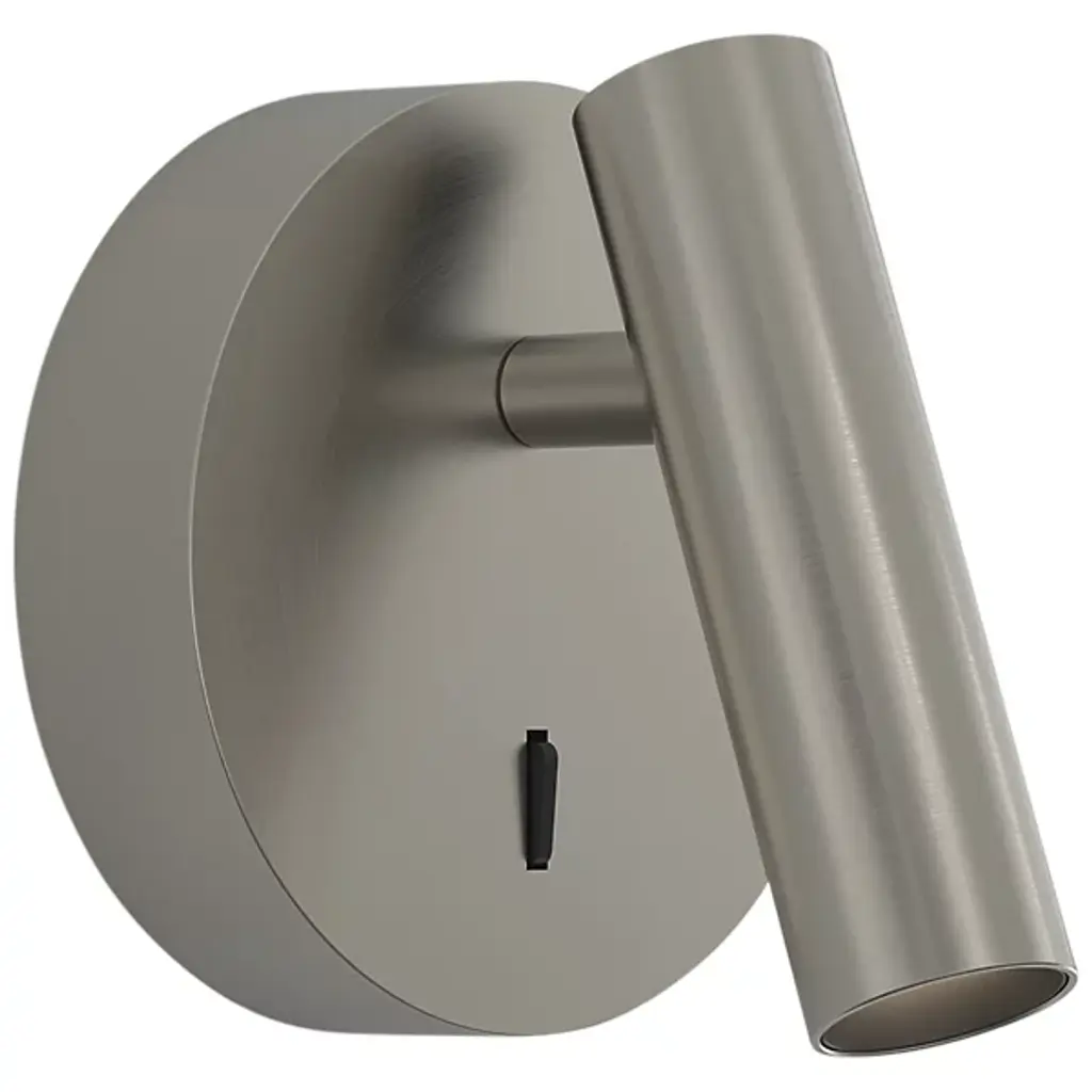 Focus on the clean and functional design of the Enna Surface Round LED Wall Sconce by Astro Lighting. This minimal piece is crafted entirely from smooth metal, with a robust circular backplate anchoring the piece into place and offering a bold statement. A fully adjustable tubular head sends light from its integrated LED in the desired direction with ease. A simple on/off switch is placed neatly on its wall mount for easy access.