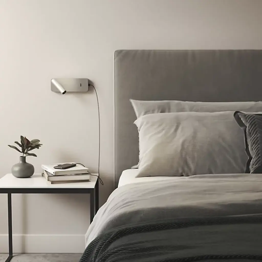 Keep the pages turning and your phone charged up for tomorrow with the Enna Surface USB LED Wall Sconce from the Astro Lighting. Snuggled up next to the bed, this piece complements the modern room with a minimalist design built in the British tradition. It pairs its smart looks with smart functionality. Twist the 330º adjustable lamp head towards you for a direct beam of light. The LED glow comes out with a softness, glazing the pages of your book. Without looking for the closest outlet, a USB port tucks at the side of the aluminum structure for convenient charging.