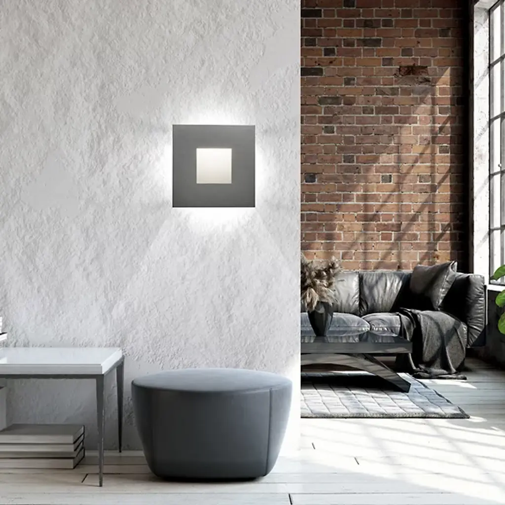 Enhance the atmosphere of spaces in your modern home with the Eo LED Square Wall Sconce with Diffuser from Ultralights. Mounting directly to the wall, this is a simple yet effective fixture that features two distinct pieces. A square body rests against the surface and upholds a flat, front-facing panel that angles slightly downward. Along the sides and front of this piece are diffuser openings that allow the light from an integrated LED within to filter out into a tasteful, ambient glow.