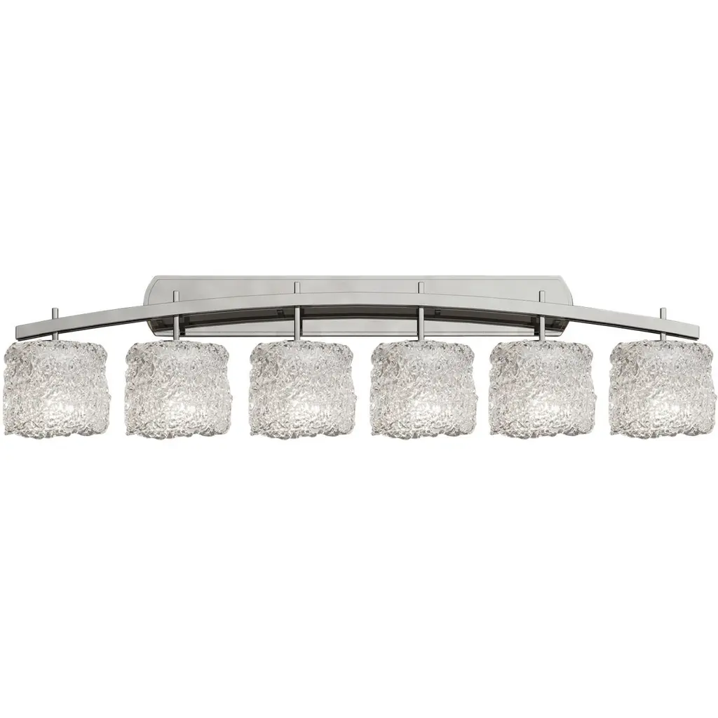 The Veneto Luce Collection is a Justice Design collection incorporating handmade glass shades. Each glass shade is truly a work of art, created by artisans in the historic city of Venice, Italy, where glass-making has been an art form for more than 700 years. Using traditional hand-forming methods, Venetian artisans form the glass shades into graceful shapes.Shade Design: Square with Rippled Rim Shade.Shade Material: Venetian Glass.Overall Dimensions: 7.75" H X 24.75" W X 5.75" Extension.Backplate Mounting Center: 7" Up; 0.75" Down.Features: This fixture can be installed as an uplight or downlight.UL certified in compliance with nationally recognized product safety standardsDamp Location rated to accommodate any room in the homeNumber of Bulbs: 3Bulb Wattage 1: 100WBulb Shape: A-19Bulb 1 Base: E-26 Medium BaseBulb 1: IncandescentBulbs Included? No