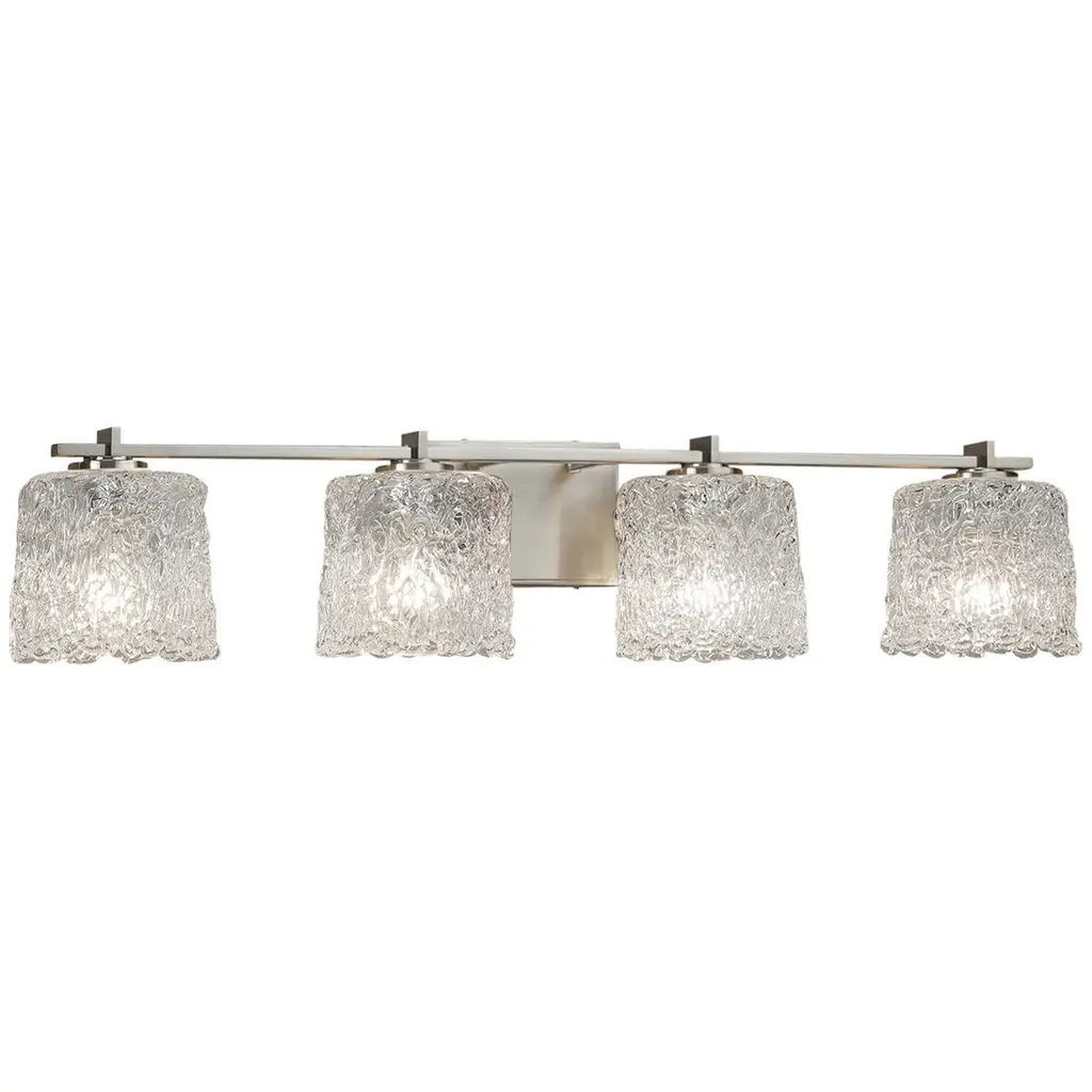 The Fusion Collection offers a selection of handcrafted artisan glass shades. These beautiful artisan glass finishes complement the clean designs of Justice Design fixtures.Features:This fixture can be installed as an uplight or downlightDamp Location rated to accommodate any room in the home including bathrooms, kitchens, covered patios, dining rooms, living rooms, bedrooms, hallways, entryways, foyers, and everything in between.Specifications:Takes three maximum 100 watt standard-medium base bulb (not included).Shade: 6.5" L x 3.5" W x 5.5" HBackplate mounting: 6" Up; 0.75" Down