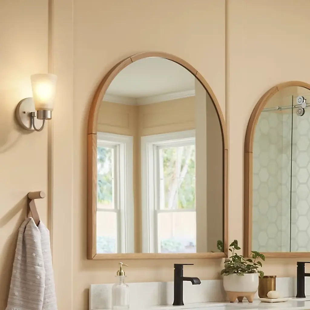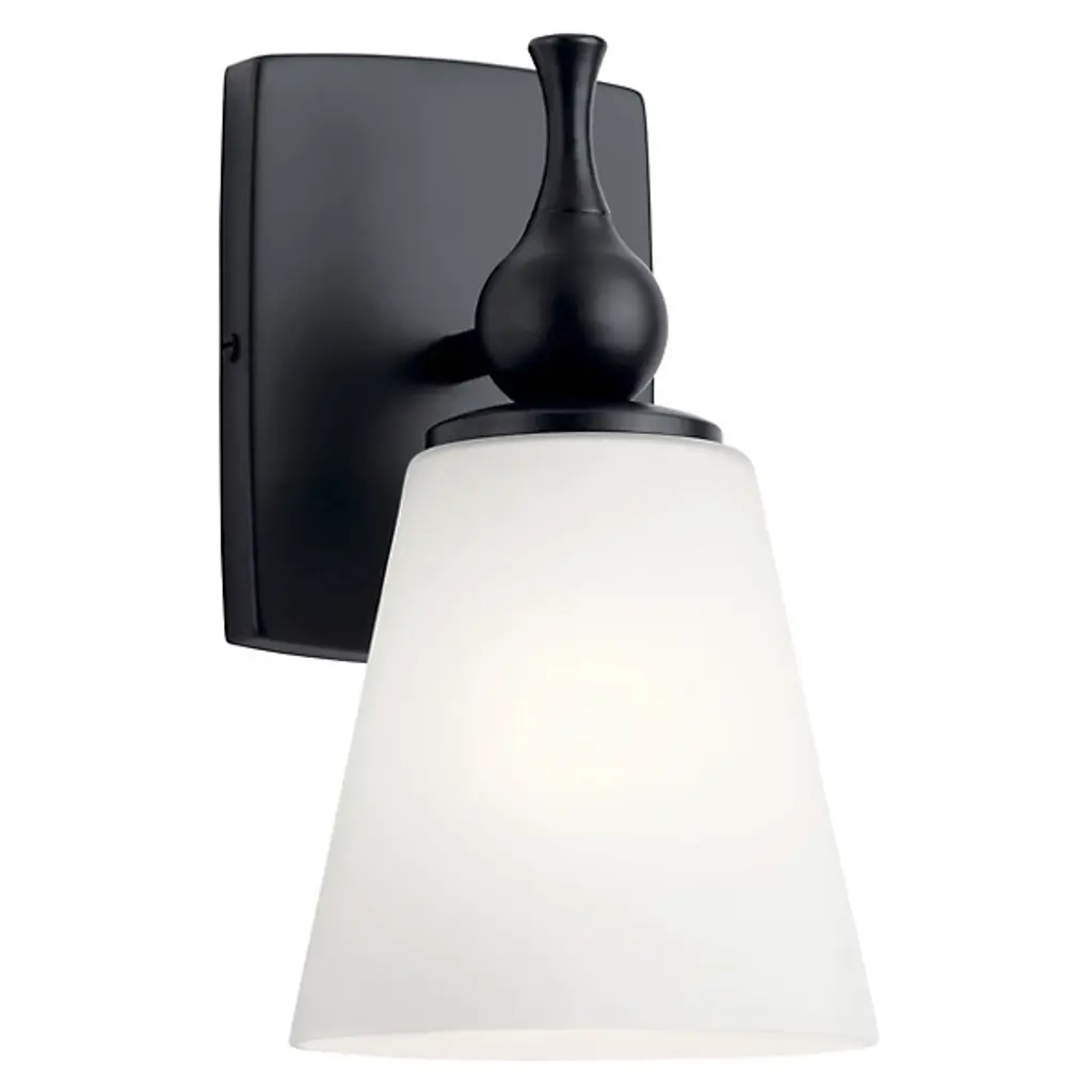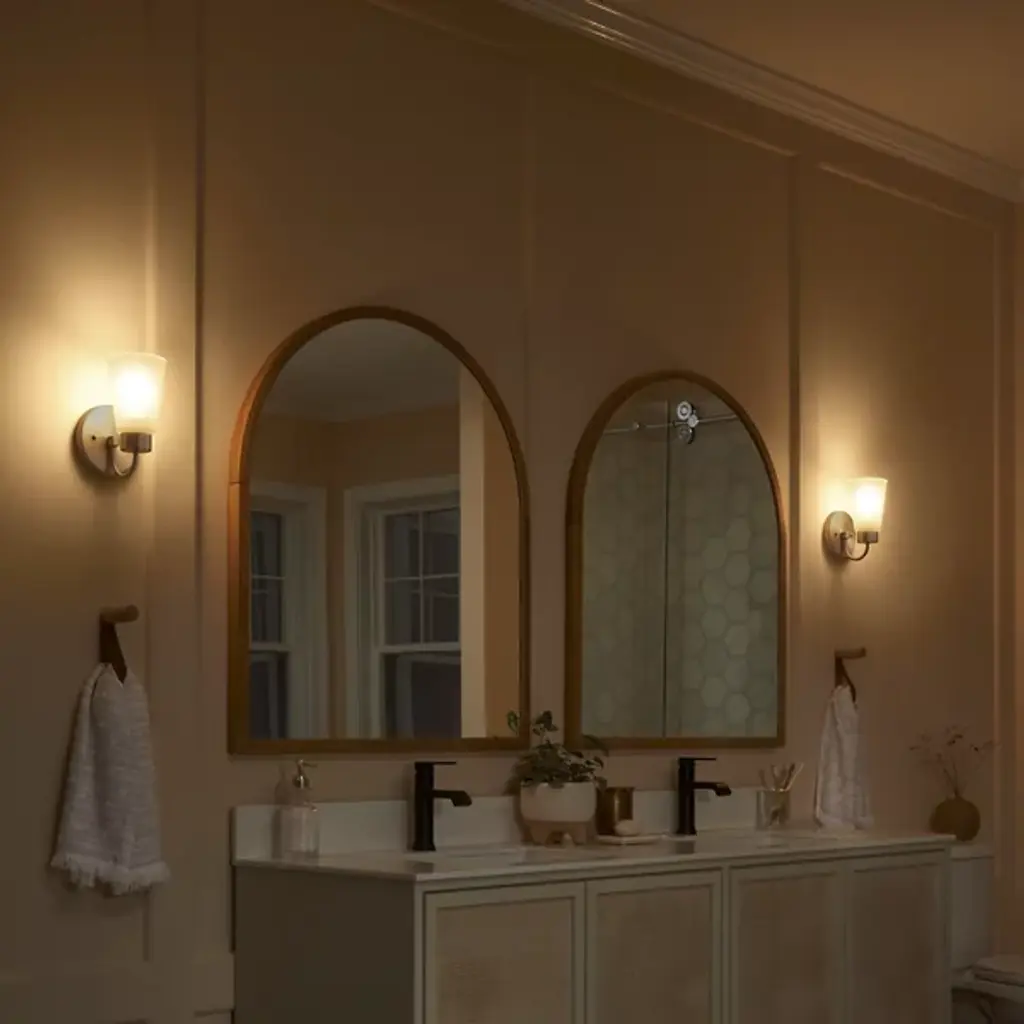 The Erma Bath Wall Sconce from Kichler combines real-world functionality with distinguished design elements. The steel frame supports a clear satin-etched glass shade that provides gentle illumination perfect for bathroom settings. An arched arm extends gracefully from the mounting plate, positioning the light at an ideal angle for vanity lighting. The damp location rating makes this sconce suitable for bathroom environments where moisture resistance is essential.