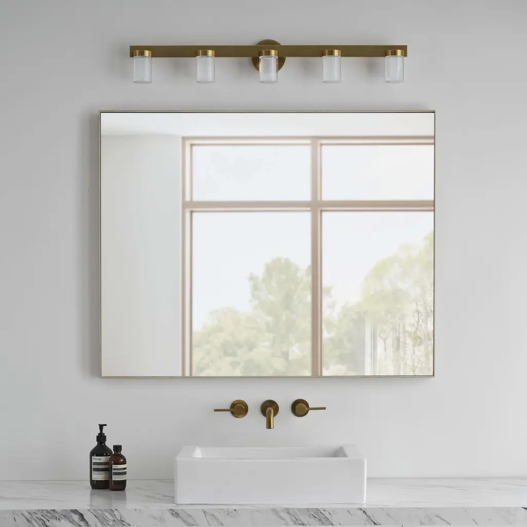 The Esfera Bath Light by Kelly Wearstler realizes the beauty of elemental materials and spatial symmetries. In an elevated exchange of visual textures and clarity of form, the transitional design of this piece is a modern portrait of the convergence of cylindrical multi-dimensional prisms as integral sources of light with simple, linear metal detailing in varied geometric gestures as the connecting base. Features