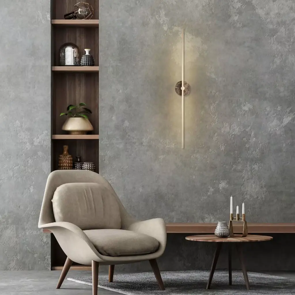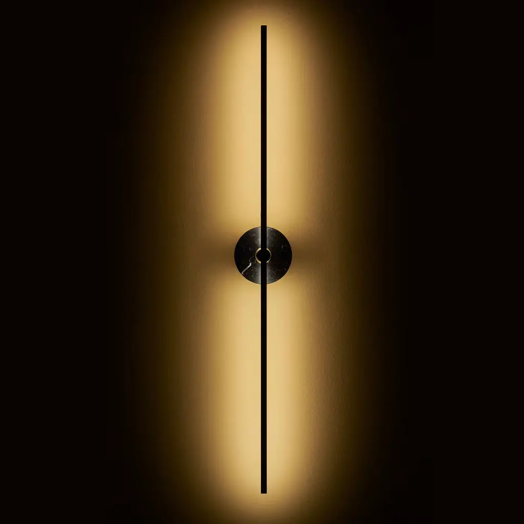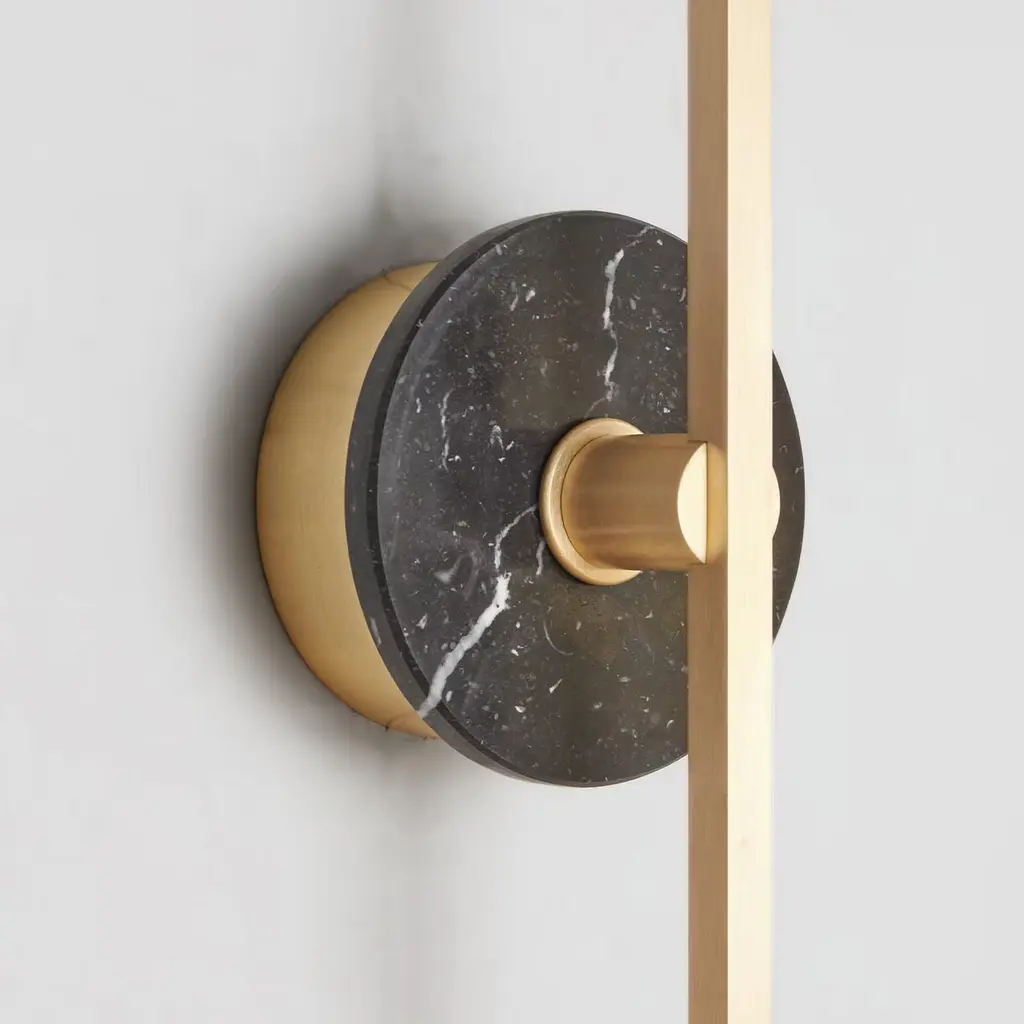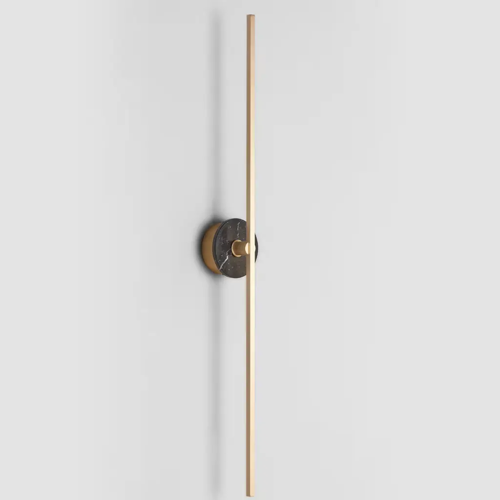"Essential Grand Stick" Wall Sconce In Satin Brass And Black Marquinha Marble