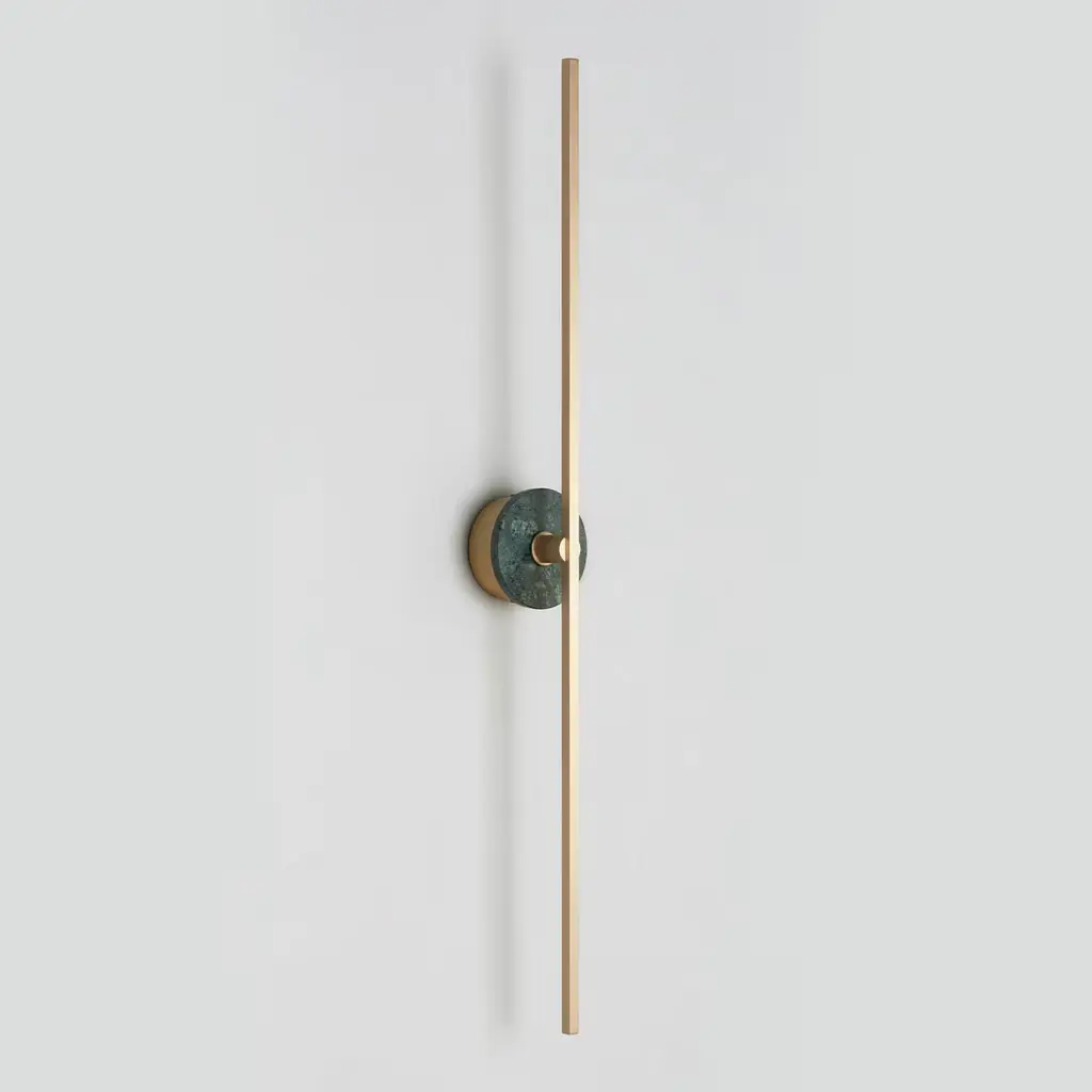 "Essential Grand Stick" Wall Sconce In Satin Brass And Green Guatemala Marble