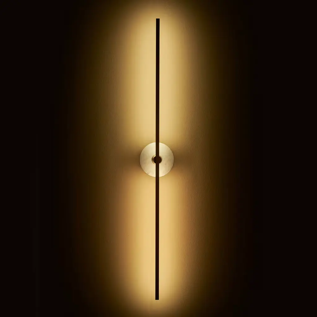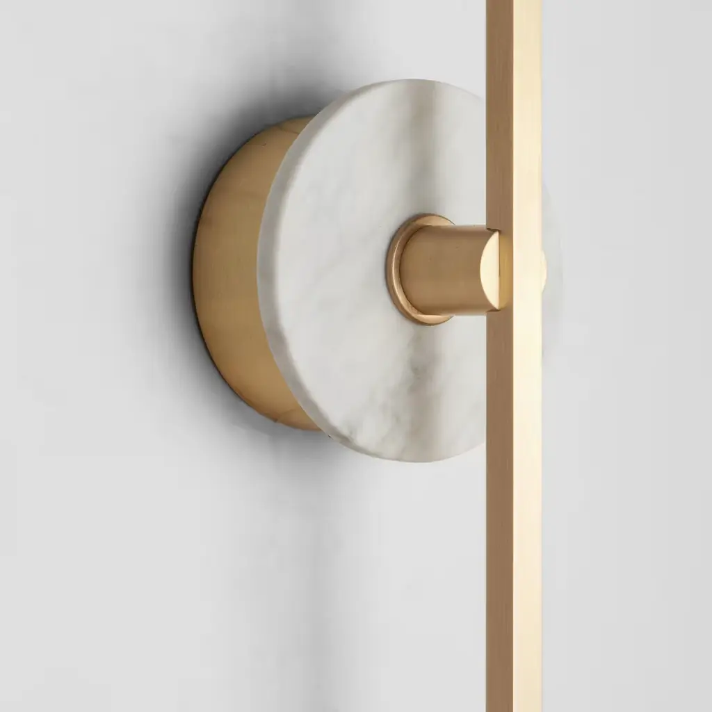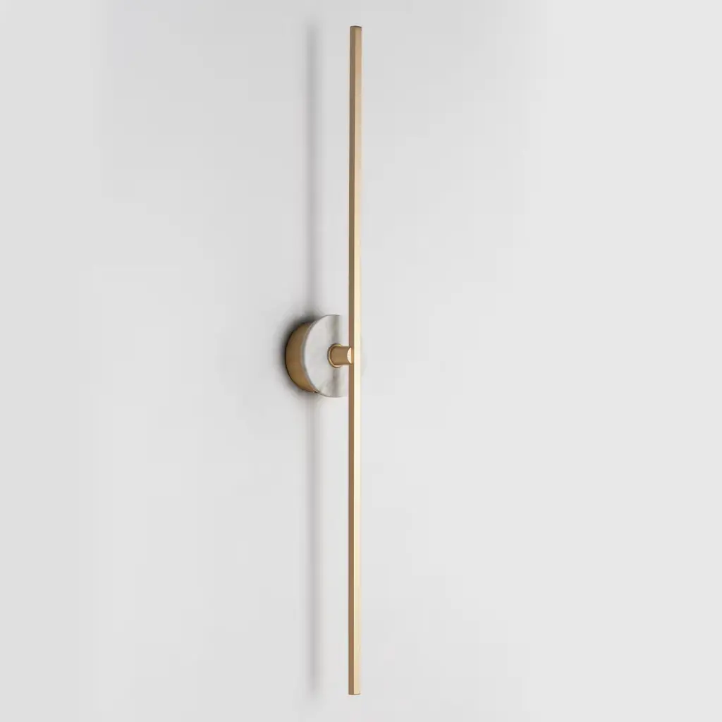 "Essential Grand Stick" Wall Sconce In Satin Brass And White Carrara Marble
