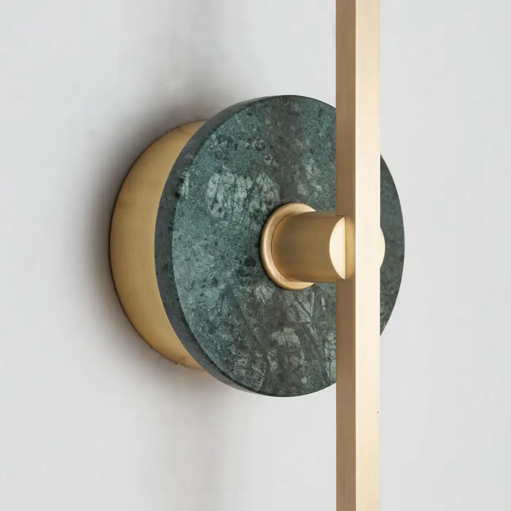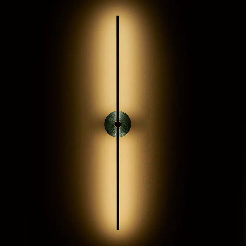 The Stick wall sconce combines the minimalism of thin brass profiles with the functionality and power of led technology, offering a warm and diffused light. The marble, pure decorative element, embellishes the structure of the product with a note of color and solidity.
