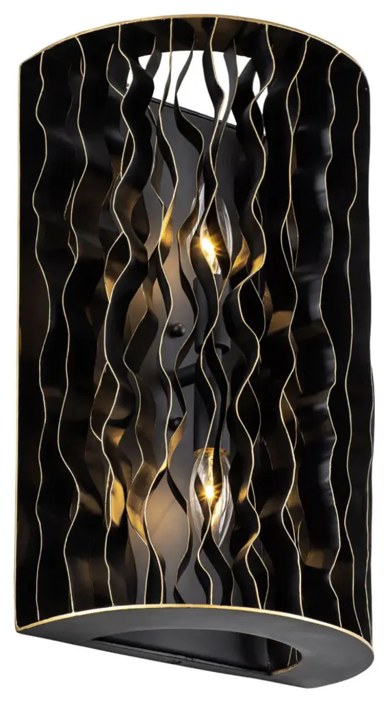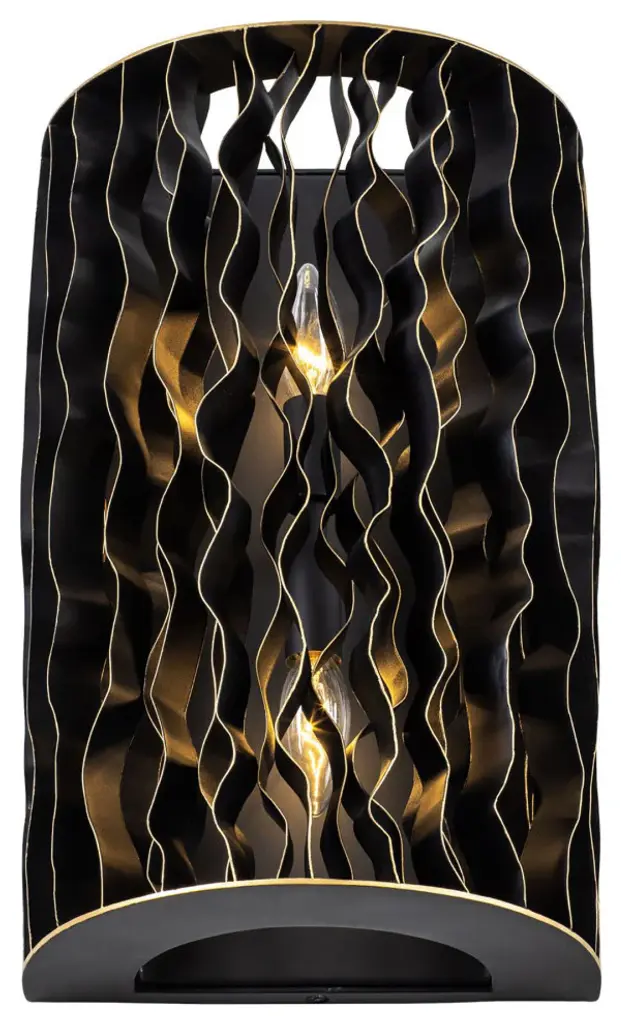 In their journeys through the Smithsonian Butterfly Habitat Garden, the designers at Varaluz reminisced about the many trails explored, both figuratively and literally. The word ''estela'' is a translation for the word ''trail,'' and this collection takes its inspiration from many of them and the nature surrounding them. Now all paths have converged in the Estela collection. We invite you to wander the cascading paths created by this new collection, where you''re sure to find your own path to enlightenment. For anyone looking for an inspired modern fixtures design, all trails lead to Varaluz. Estela features doubled up recycled wavy steel vanes finished in black with a slight gold edging inspired by the beauty of the Monarch butterfly.Requires 2 x 60 watt Candelabra incandescent bulb(s) (Not included)