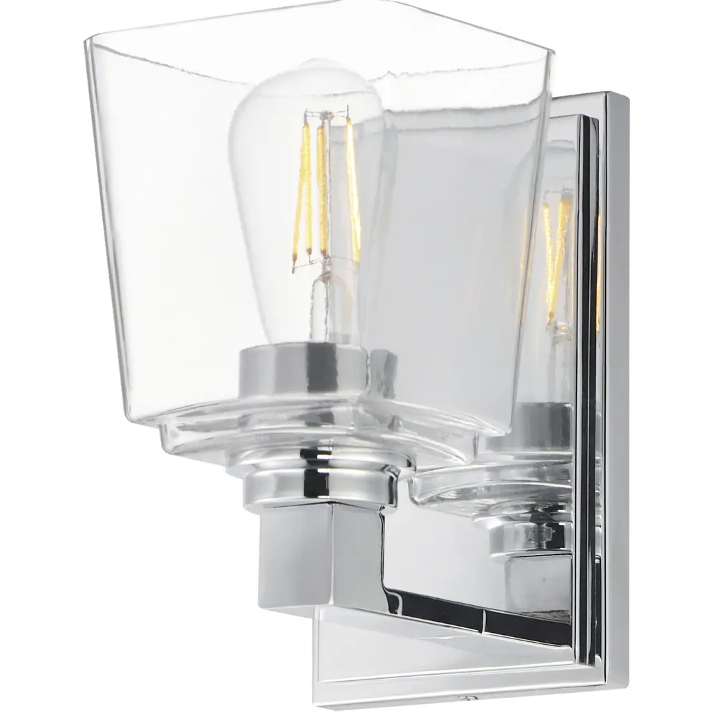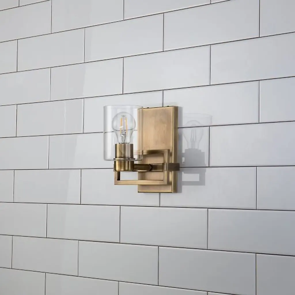 Give your home a formal look with the Estes Wall Sconce by Lucas McKearn. Like an architectural chameleon, the clean, simple lines and clear glass of Estes allow it to seamlessly enhance your setting from traditional and transitional to modern and contemporary. A rectangular backplate secures the sconce’s metal frame, allowing halogen light to emanate throughout your surroundings.