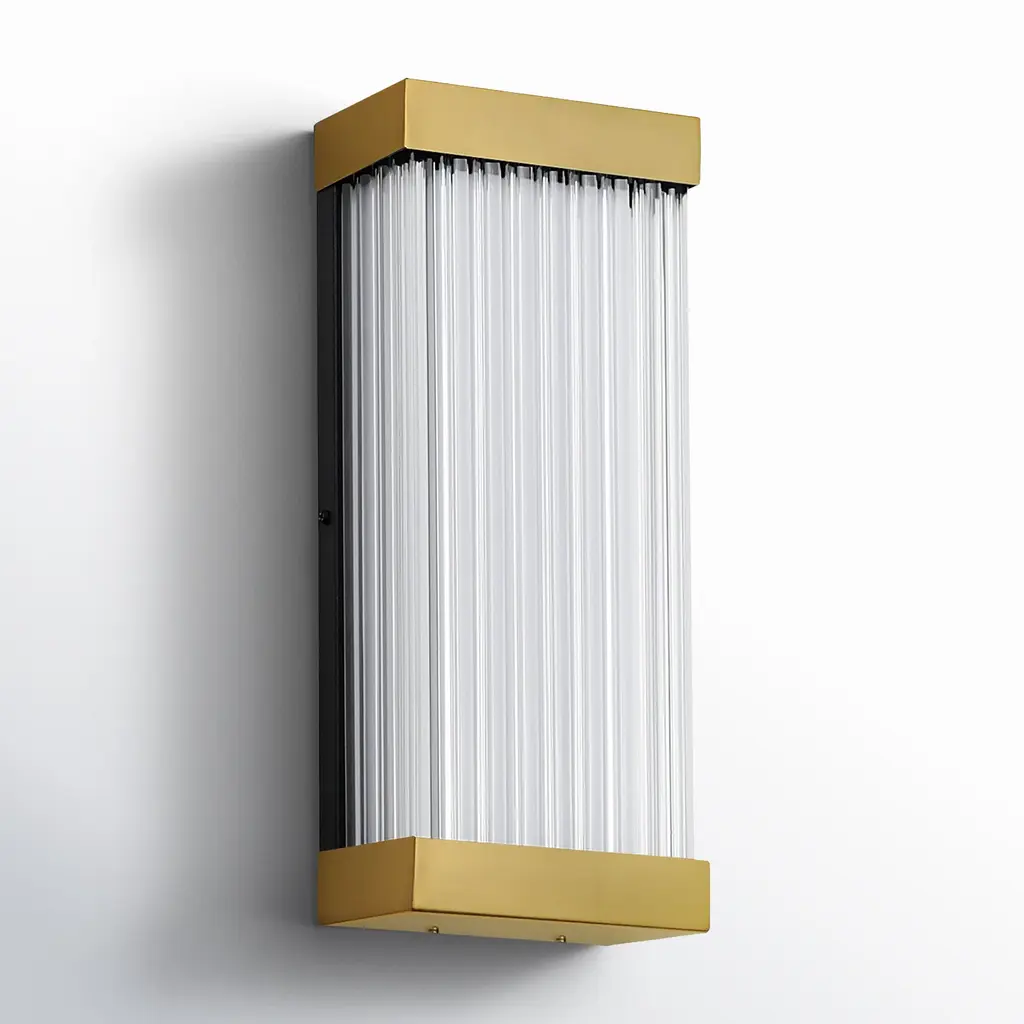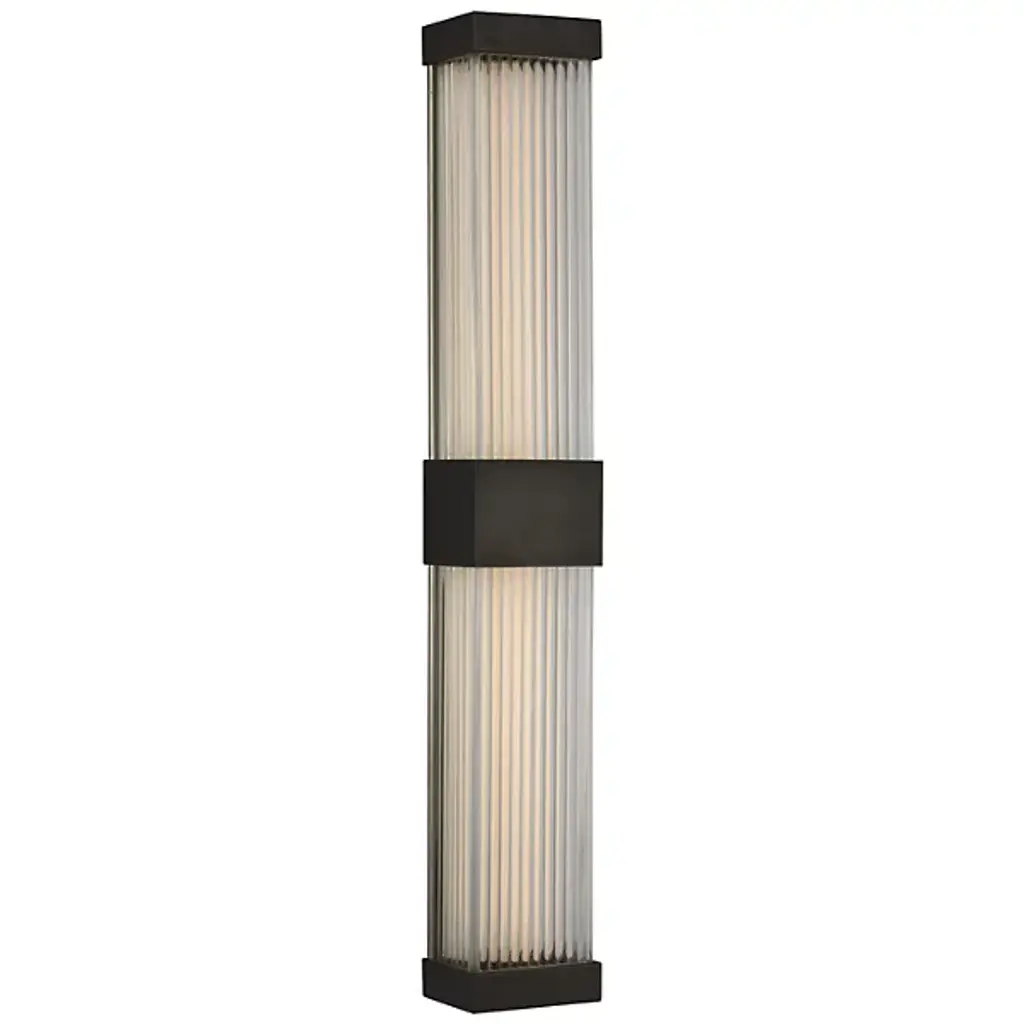 A colonnade of faceted crystal columns form these rectangular wall sconces suitable for wet locations. The crystals are backlit with an evenly distributed LED light source that is set within non-corrosive Aluminum and Stainless Steel frames. With an extension compliant for ADA applications, this collection can be used on the interior or exterior of any space.