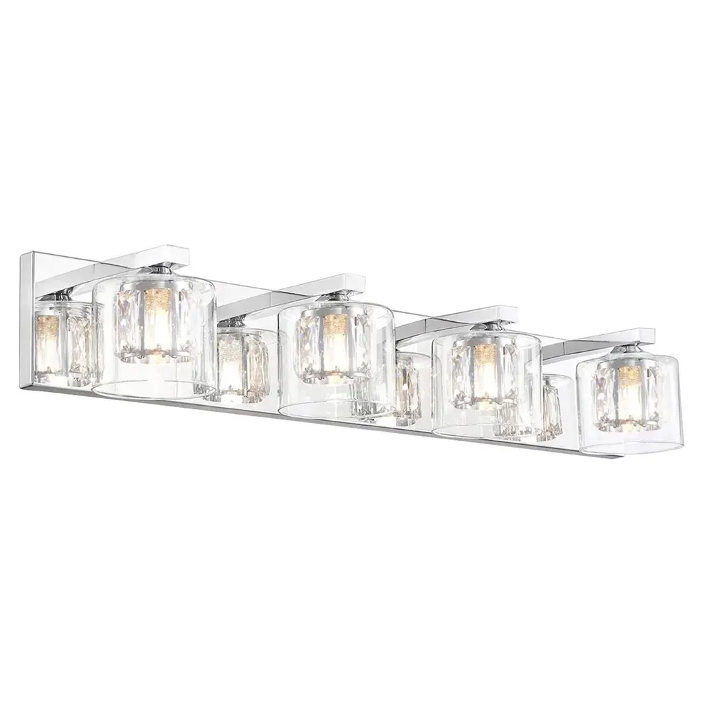 The building blocks of style. This collection comes in a wide variety of applications for the most innovative illumination solutions. The lamp configurations boast thick, Clear/Frosted square glasses encasing G9 LED bulbs. Light blocks are anchored to a highly reflective Polished Chrome frame that reflects their simple elegance. Color Temperature: 3000 Lumens: 880 CRI: 80+ Mounting Direction: Up Shade Included: Yes