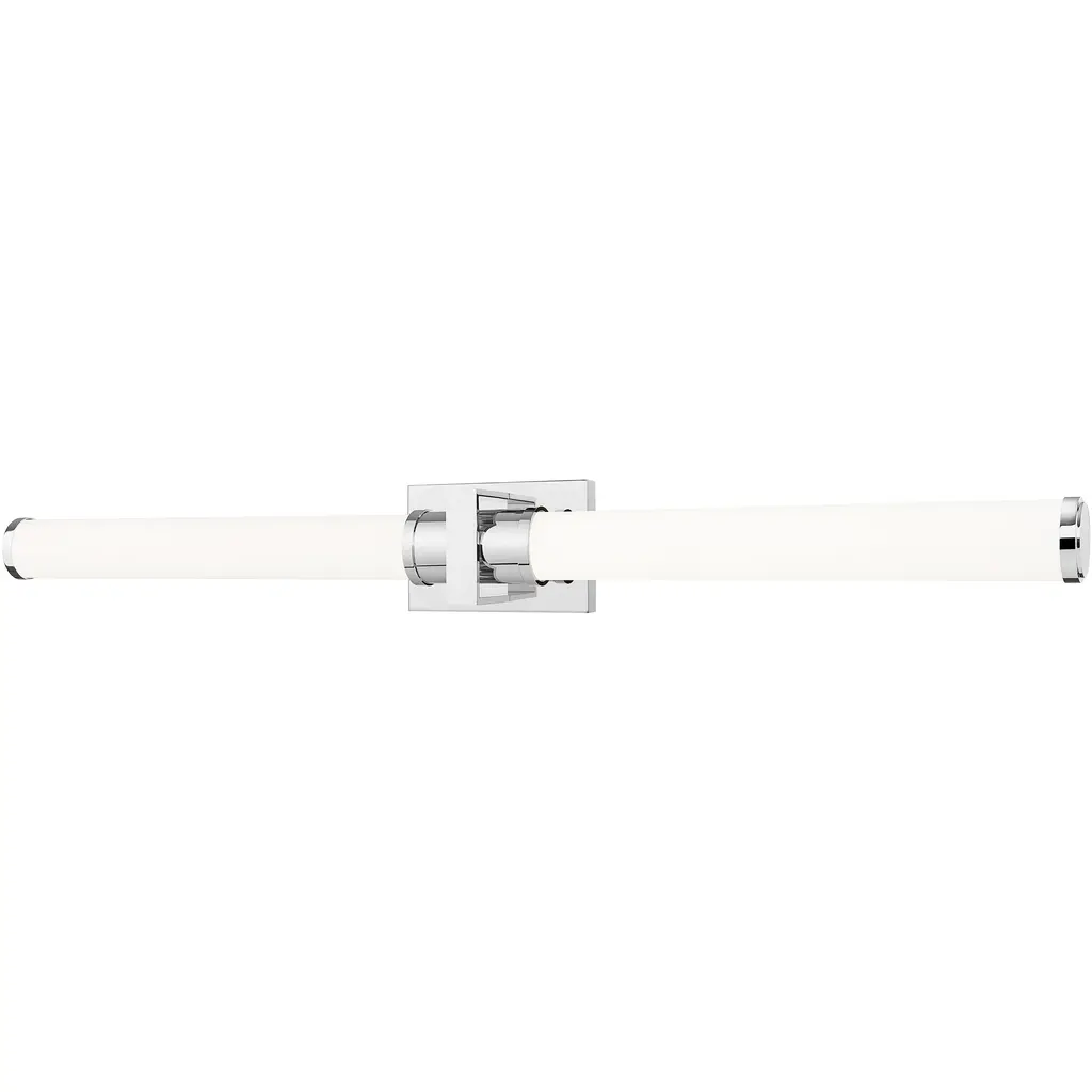 A bold and timeless sconce, Dorian features a sleek, square block support with two cylinder LED tubes horizontally extended. These tubes rotate individually to allow the LED light unique positioning. The collection features linear and vertical pendant configurations with slender profiles that offer enhanced visibility. The elongated vertical pendants are perfect to light lofty spaces. Their rotatable extensions direct the light along areas such as stairwells and can highlight artwork and collectible displays at taller heights. The wall-mounted sconces offer similar features with additional streamlined back plate designs that mounts to either a single gang junction box or common 3-0 or 4-0 boxes with cover plate included. These sconces suit light portraits, shelves, or work as bath vanities. They extend less than four inches in compliance with ADA standards. Available in Matte Black, Polished Chrome, and plated Gold, this collection is a subtle, handsome design with timeless appeal.