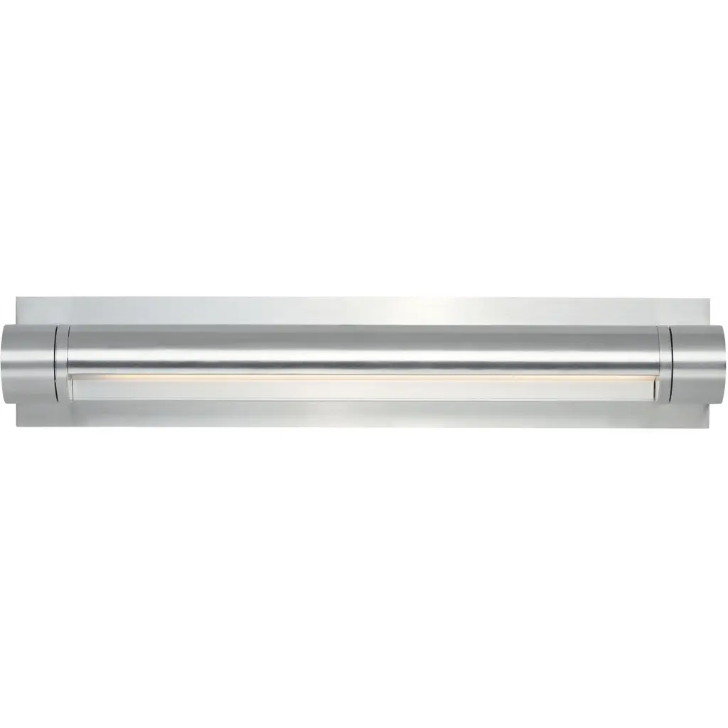 Clear ribbed glass encases a tube of opal white acrylic evenly illuminated by LED. The ends of the glass shade are fitted with knurled cylinder forms that suspend the sconces from their mounting plates. Dual mounted options are available for this series allowing it to be installed on single gang junction boxes. Available in Natural Aged Brass, Polished Chrome, or Matte Black finishes.
