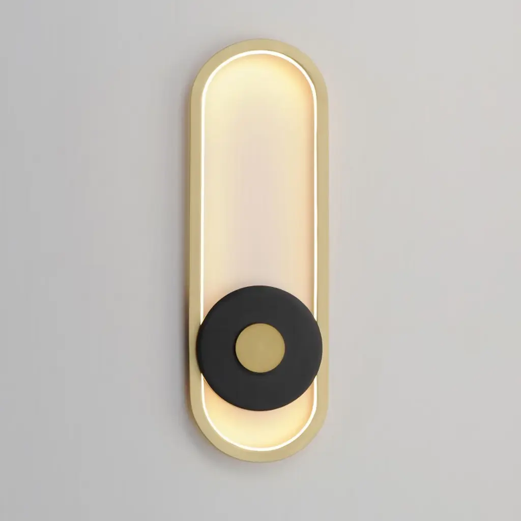 An elliptical shape in Gold finish is illuminated by dedicated LED lighting and secured to a disc in contrasting black finish making a modern silhouette rated for outdoor applications. Suitable for wet locations, the fixture is constructed of corrosive resistant aluminum channel finished in UV-rated outdoor powder coats and sealed within the frame to prevent water intrusion. With an extension less than 4 inches, this attractive sconce series is also inherently ADA compliant for indoor public spaces where needed.