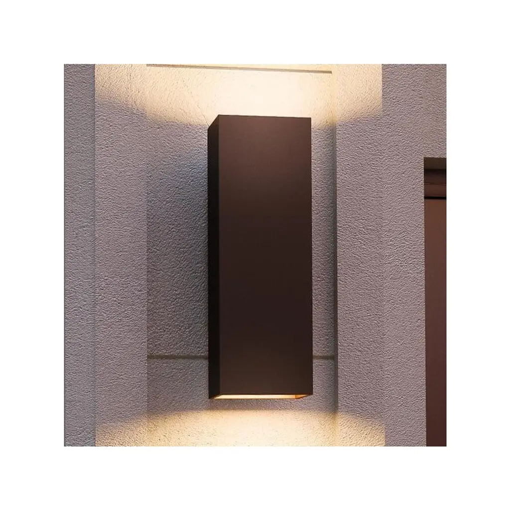 Sharp rectilinear metal lines surround a squared LED housing that shines both upwards and downwards, creating an intriguing pattern of light. This collection offers a full range of products that suits exterior and interiors without bounds. Available in a variety of sconce sizes, as well as an additional pendant and post mount option, the design is completed in a matte Black finish that complements most settings.