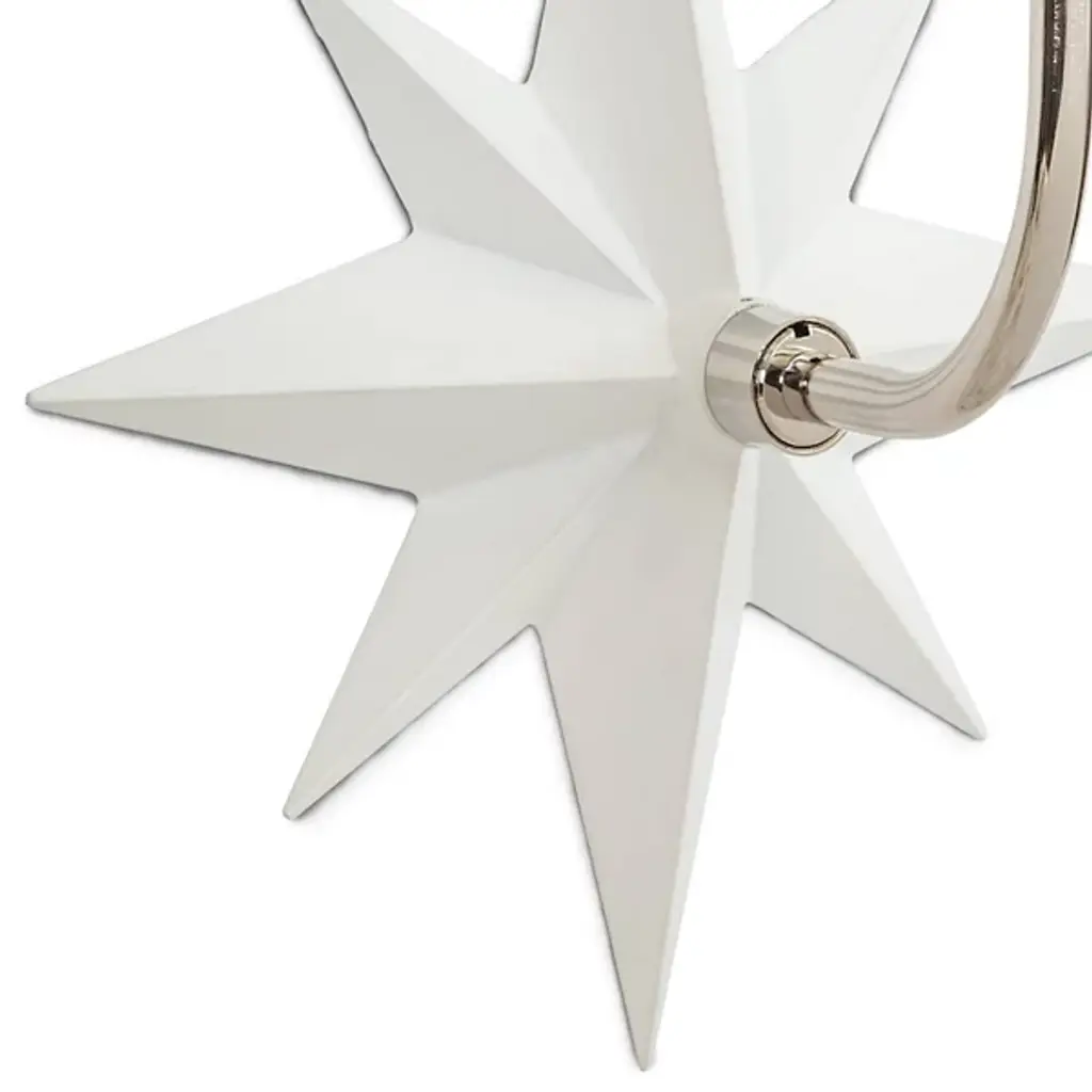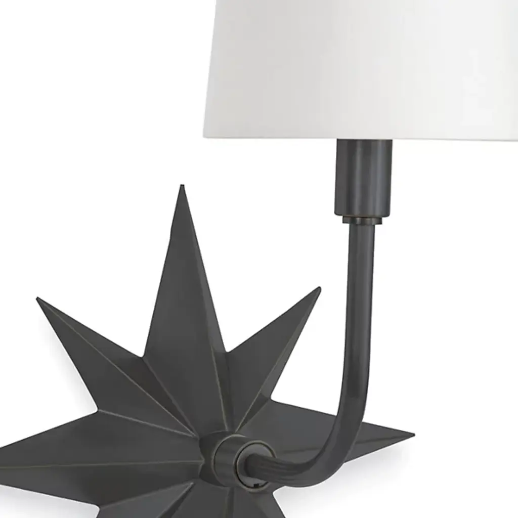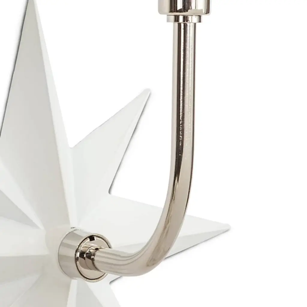 Add classic imagery and evoke a coastal aesthetic in the rooms of your modern home with the Etoile Sconce from Regina Andrew. An eight-pointed star made of smooth metal attaches directly to the surface, extending a gently curving arm that rises up to a tapered, crisp linen shade. The shade contains a single bulb that brings the piece to life, sending out a warm glow through the shade and into the surrounding room.