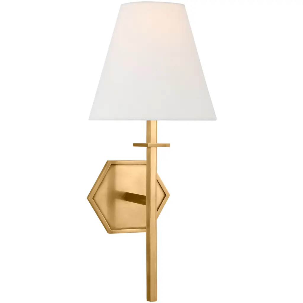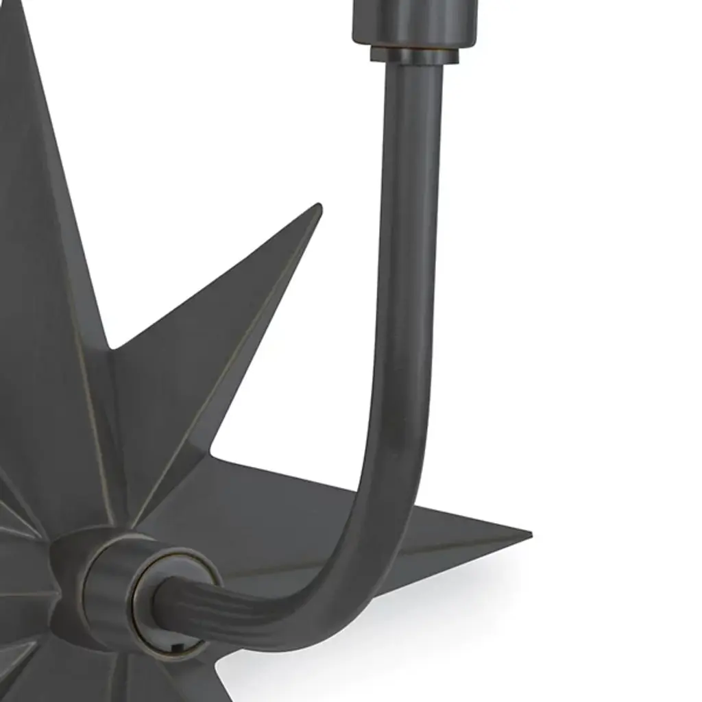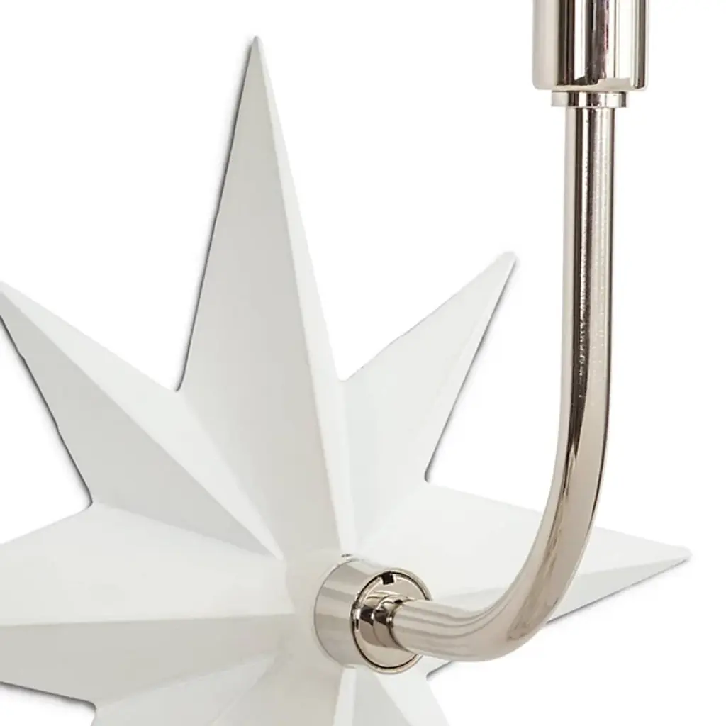 Add classic imagery and evoke a coastal aesthetic in the rooms of your modern home with the Etoile Sconce from Regina Andrew. An eight-pointed star made of smooth metal attaches directly to the surface, extending a gently curving arm that rises up to a tapered, crisp linen shade. The shade contains a single bulb that brings the piece to life, sending out a warm glow through the shade and into the surrounding room.