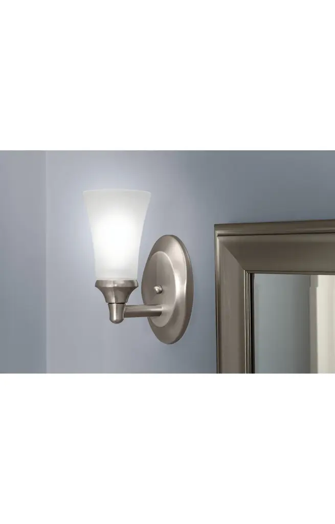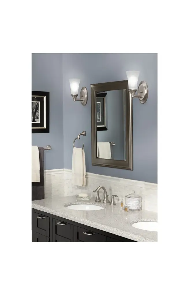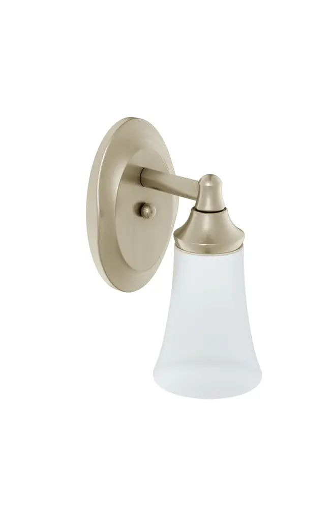 With flowing curves, the Eva collection's transitional design is pure and organic. Petal-like handles and swan-like spout bring a relaxed feeling to the bath.Features:Brushed nickel finish brings the warm look of stainless to your bathSupports up to 100 watt max bulbsOne globeUl(r) listedReplacement globes availableFixtures can be mounted with glass globes facing up or down for more design flexibilityQuick-connect wiring allows you to pre-wire the light fixture to the junction box for a quicker, easier installationStandard 120 voltageLimited lifetime warrantySpecifications:Collection: EvaFinish: Brushed NickelLength (in.): 13Width (in.): 9.9Height (in.): 17.6