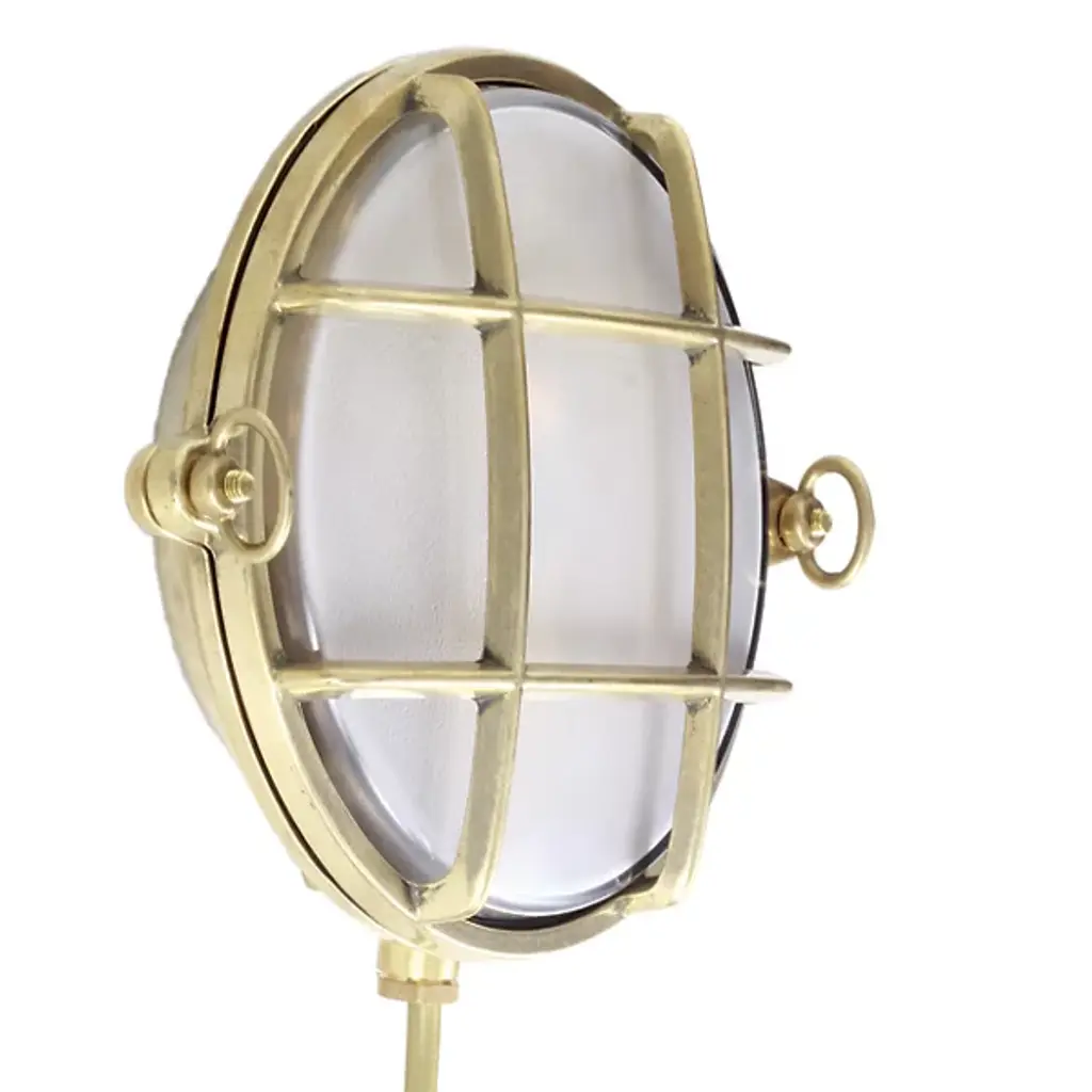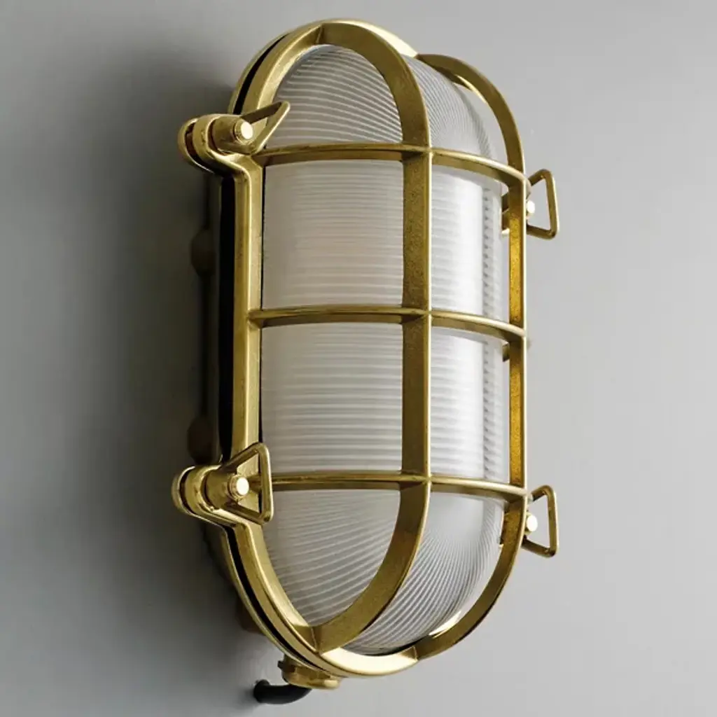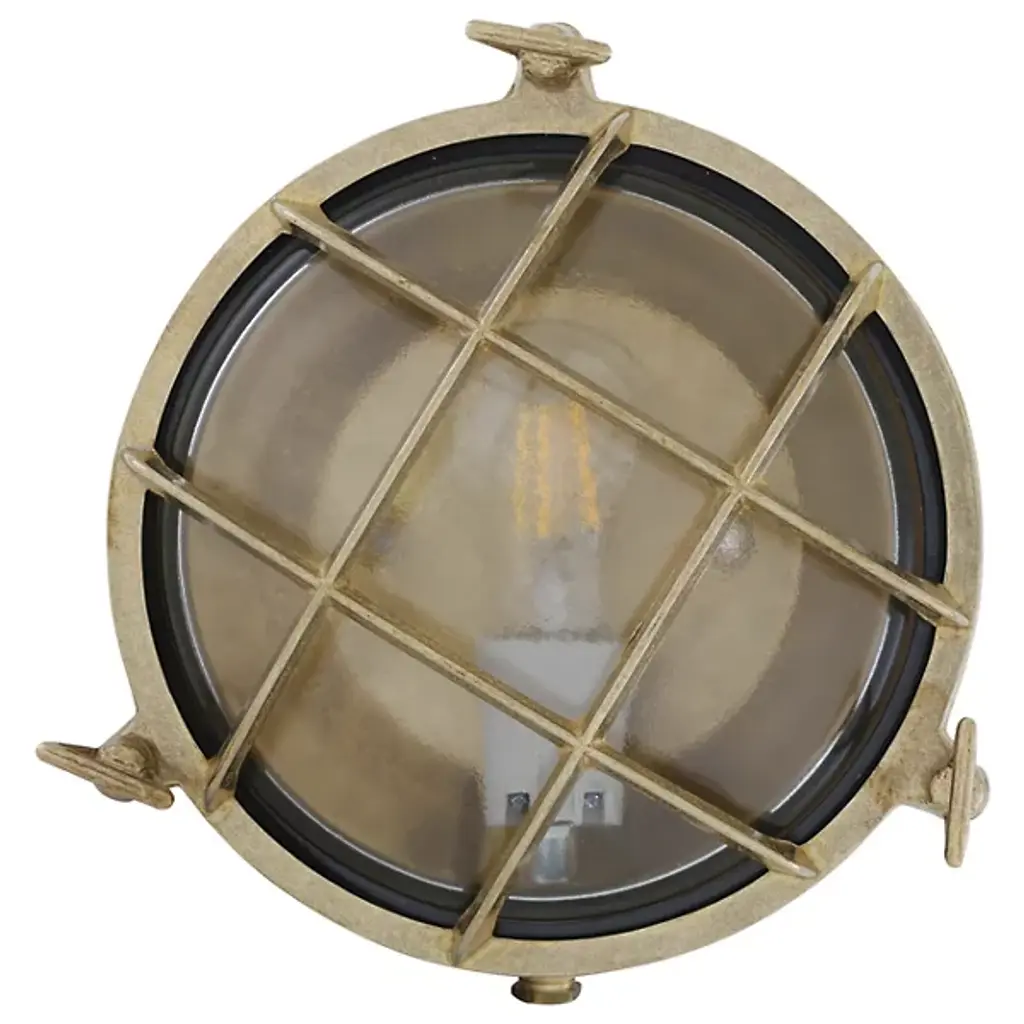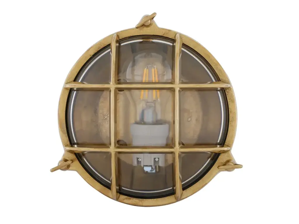 The Evander Marine Bulkhead Wall Light suitable for any minimalist or industrial style setting.Material Brass | GlassProjection 10cm | 4”Weight 1.560kgMax Wattage 40wVoltage 220/240vLampholder E27 | Ceramic | ES | Edison ScrewIP Rating IP54