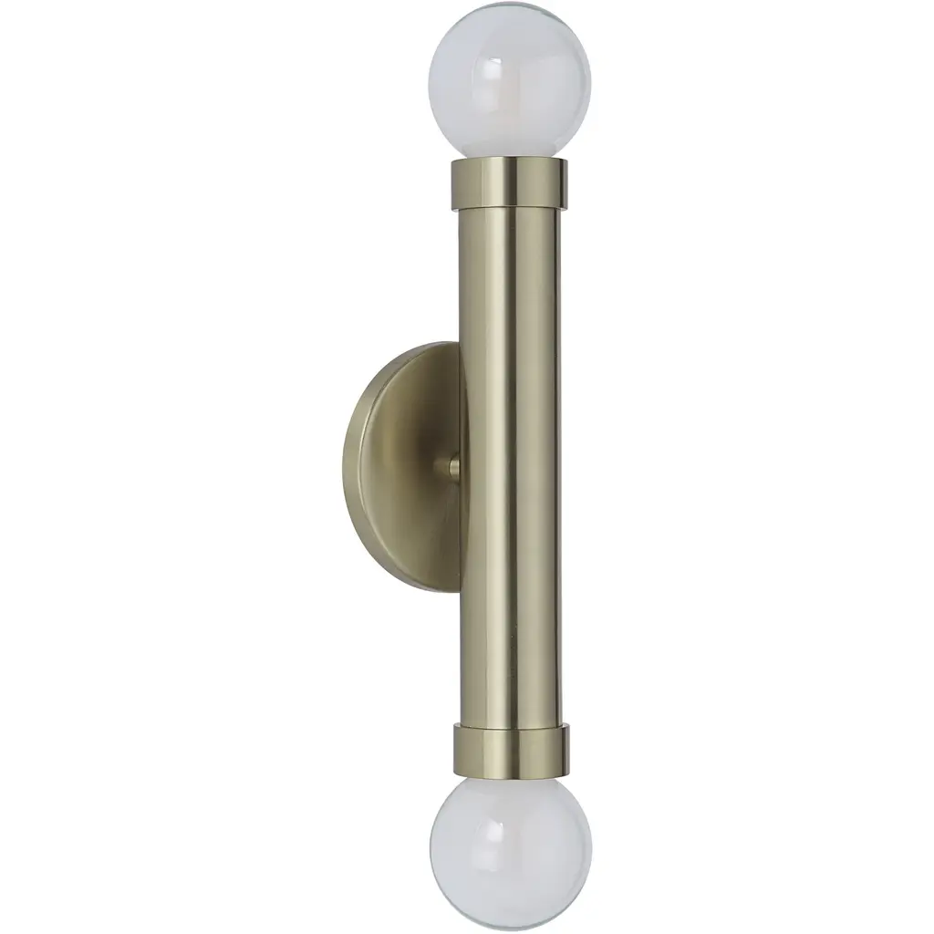 The Evandra 2-Light Wall Sconce is the perfect lighting fixture to add a touch of elegance and modernity to any room. With its sleek design and durable construction, this sconce seamlessly connects with standard E26 sockets for easy installation. The robust iron wall canopy ensures a secure and stable fixture while supporting bulbs up to 40W, making it compatible with a wide range of lighting options. Its recommended bulb type provides a warm and inviting ambiance for any space. With hardwired installation, the Evandra Wall Sconce offers reliable and integrated performance that will transform your room into a luxurious oasis.