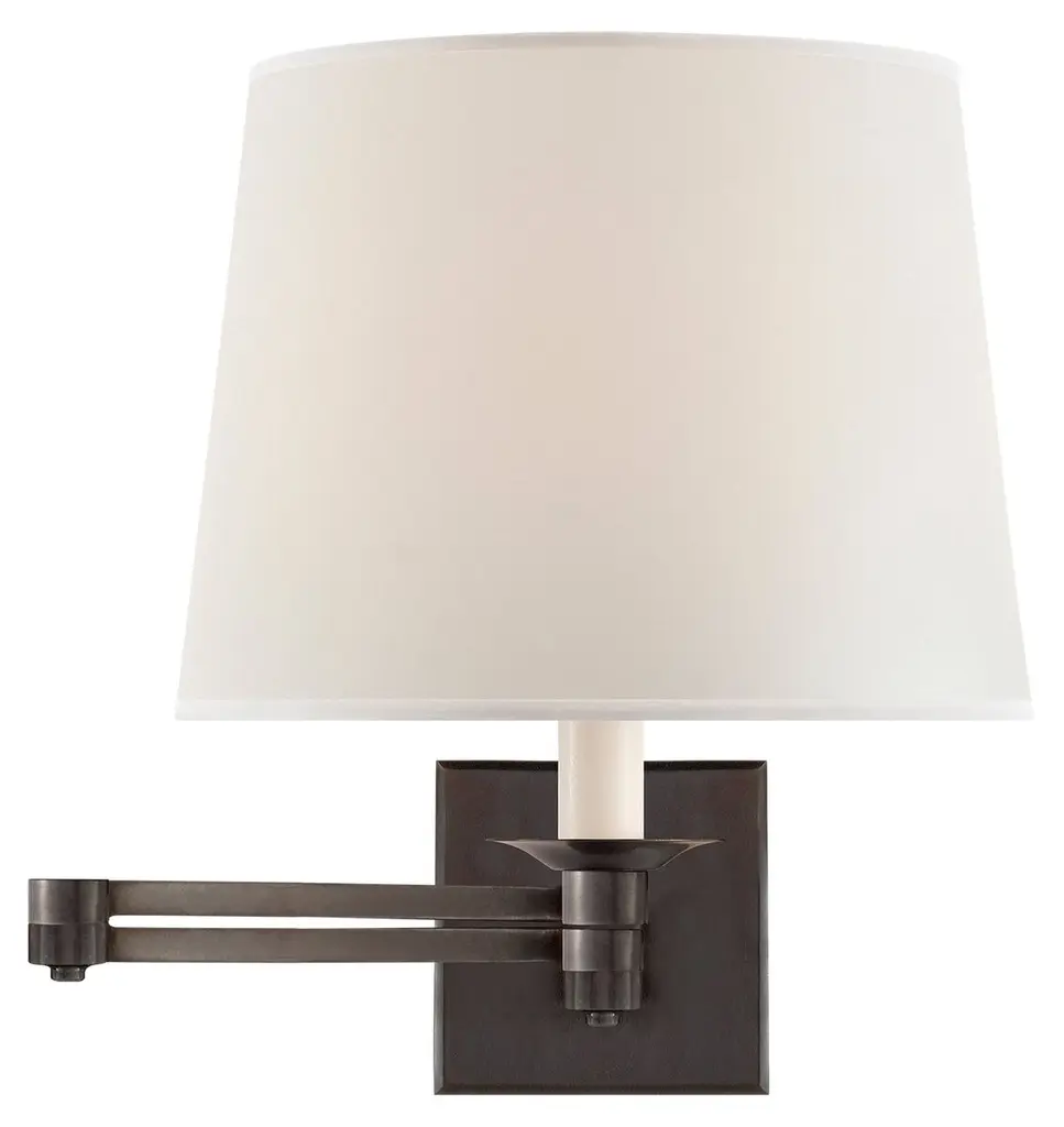Liven your living spaces with the rustic, highly functional Evans Swing Arm Wall Sconce from Visual Comfort Signature. Designed by fashion icon Ralph Lauren out of high-quality brass and percale fabric, this sturdy sconce brings long-lasting lighting where you need it most. Equipped with a classic double-jointed arm, its easy to move the light side to side to fit your desired ambiance.