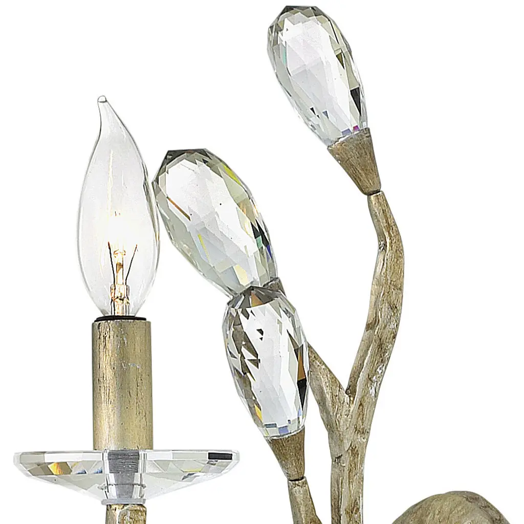 Eve's graceful, hand-forged tubing creates a natural, vine-like pattern in a hammered Champagne Gold finish while faceted clear crystal buds emanate from the tips.
