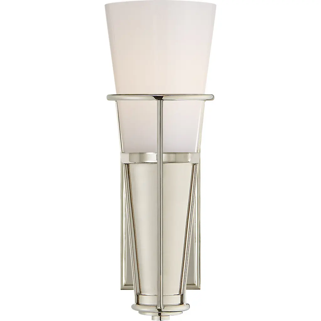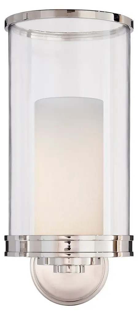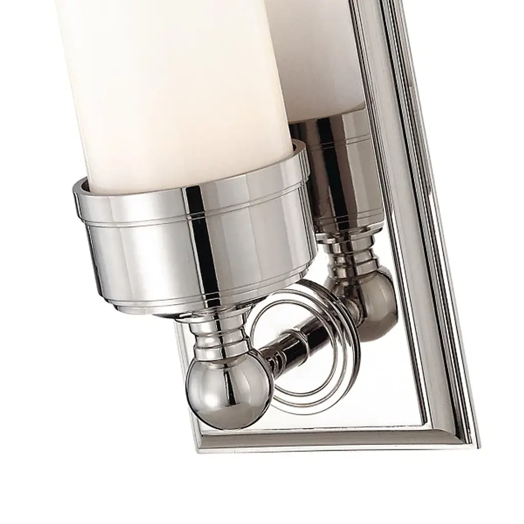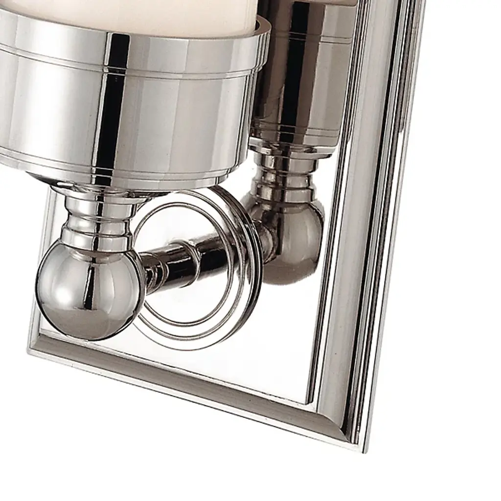 Instantly transforming, the Hudson Valley Everett Wall Sconce No. 371 characterizes a space with its unique brass design. Its bold look is balanced by understated glass and metal elements, simple in form and graceful in function. Finished in Aged Brass, Old Bronze, Polished Nickel or Satin Nickel.