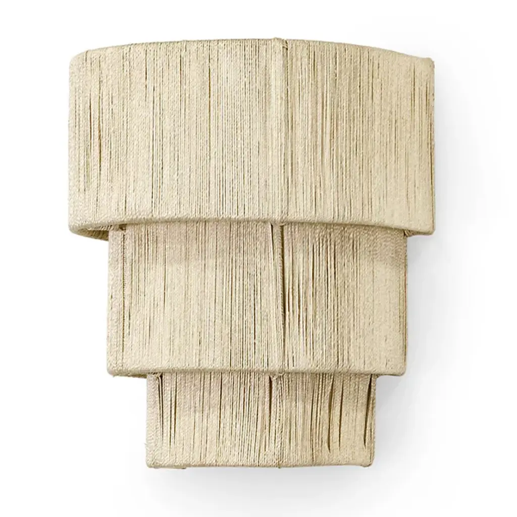 The Everly 3 Tiered Wall Sconce is a luminary design presented by Palecek. Featuring hand-woven abaca roping that sits cleanly over a powder-coated metallic frame that descends in size based on tier level. When illuminated, the flow of light within creates a warm glow to bring a comforting aesthetic to locales of choice. Display Everly as a solo piece or in multiples on walls of preference to animate the surrounding décor space beautifully.