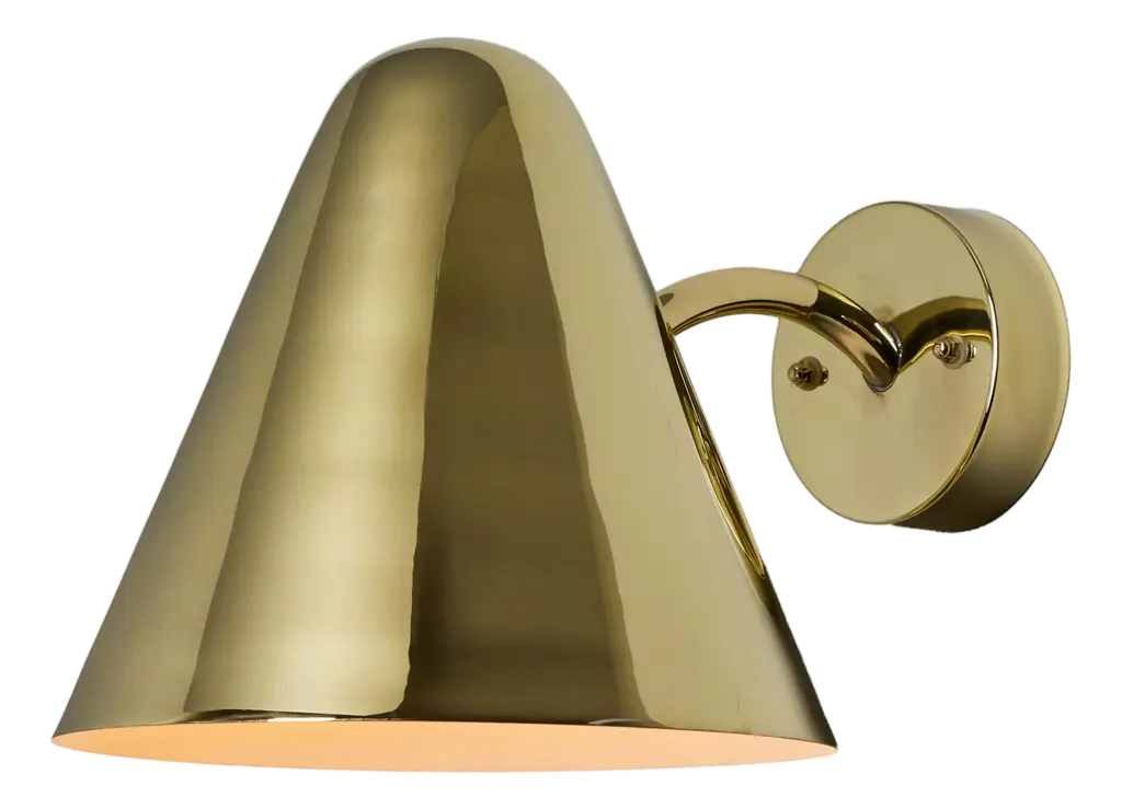 A metal shade attaches directly to the backplate and curves around the single bulb of this tapered sconce. Light dances off the back and through the top of the Aged Brass, Old Bronze or Polished Nickel shade to create a soft flame-like effect.