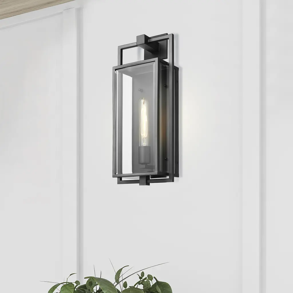 Exhibit 1-Light Large Wall Lantern - Matte Black Finish with Clear Beveled Glass