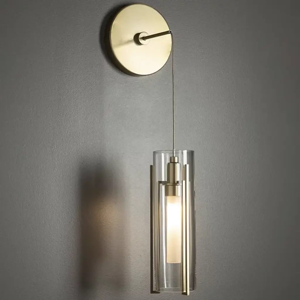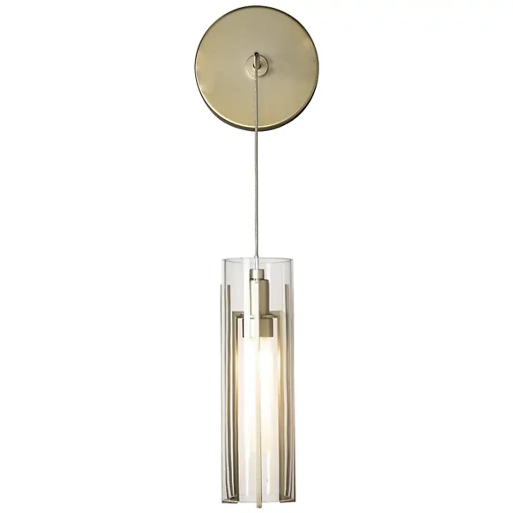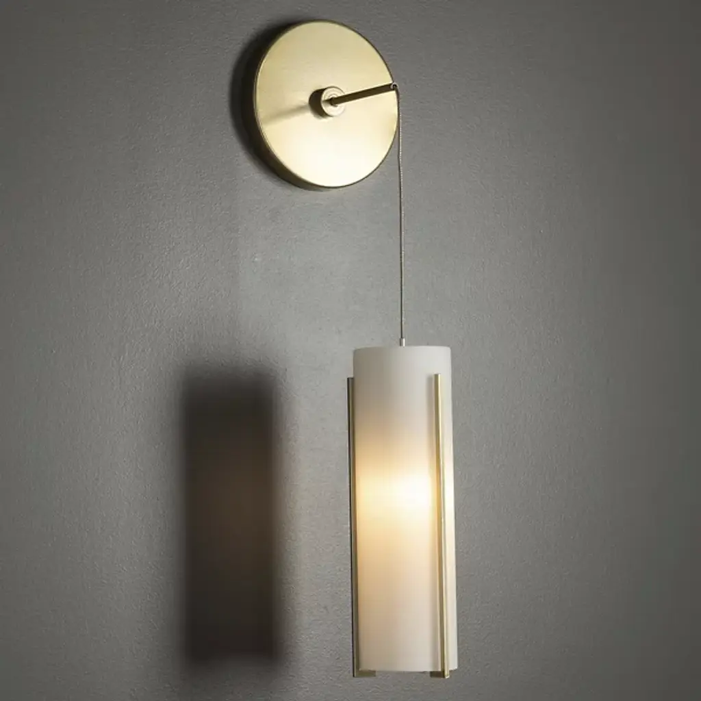 Delicate modern lighting with a vertical focus. The Exos Wall Sconce by Hubbardton Forge emphasizes that orientation with 2 cylindrical glass shades and a vertical metal frame cradling the outer shade. This clean-lined wall sconce makes it easy to enjoy low voltage lighting wherever you need it. It has a low voltage transformer integrated in the wall plate, plus specialty low voltage cable that is also adjustable for ideal placement on either side of a bed, vanity area or other modern living space.