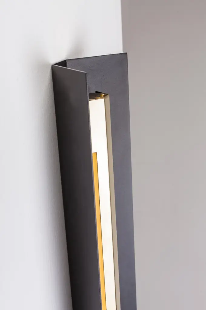 Extra Large Misalliance Ex jet black wall light by Lexavala.Dimensions: D 16 x W 160 x H 8 cm.Materials: powder coated shade with details made of brass or stainless steel.There are two lenghts of socket covers, extending over the LED. Two short are to be found in Suspended and Surface, and one long in the Wall model. Customization available. Choosing a different cover than the one in stock involves an additional fee.Hello! My name is Jakuband I’m glad you’re here.Light allows us to create everything.It illuminates the paths we walk and the tables we write our tales on.I have always wanted to create somethingthat standouts from the first time it shines and maintains timeless standards.Every piece released by this companyis a carefully touched product ment to tell something.One isn’t just a lamp. It’s a jewelery with a collection of emotions.I strongly believe that here is where your strivefor a key element of decor could end.Combining efficiency of industrial workspace and magnificanceof handcrafted materials there was only one outcome – Lexavala.Minimalism with boundless range.My company delivers practical art. I make sure every lampaccepted in your living space is going to become a worthy part of your story.