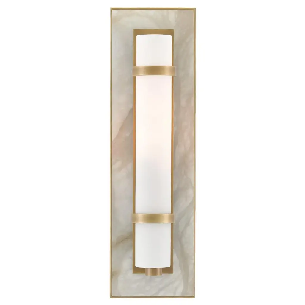Ezar Mid Century Modern Natural Alabaster Brass Wall Sconce