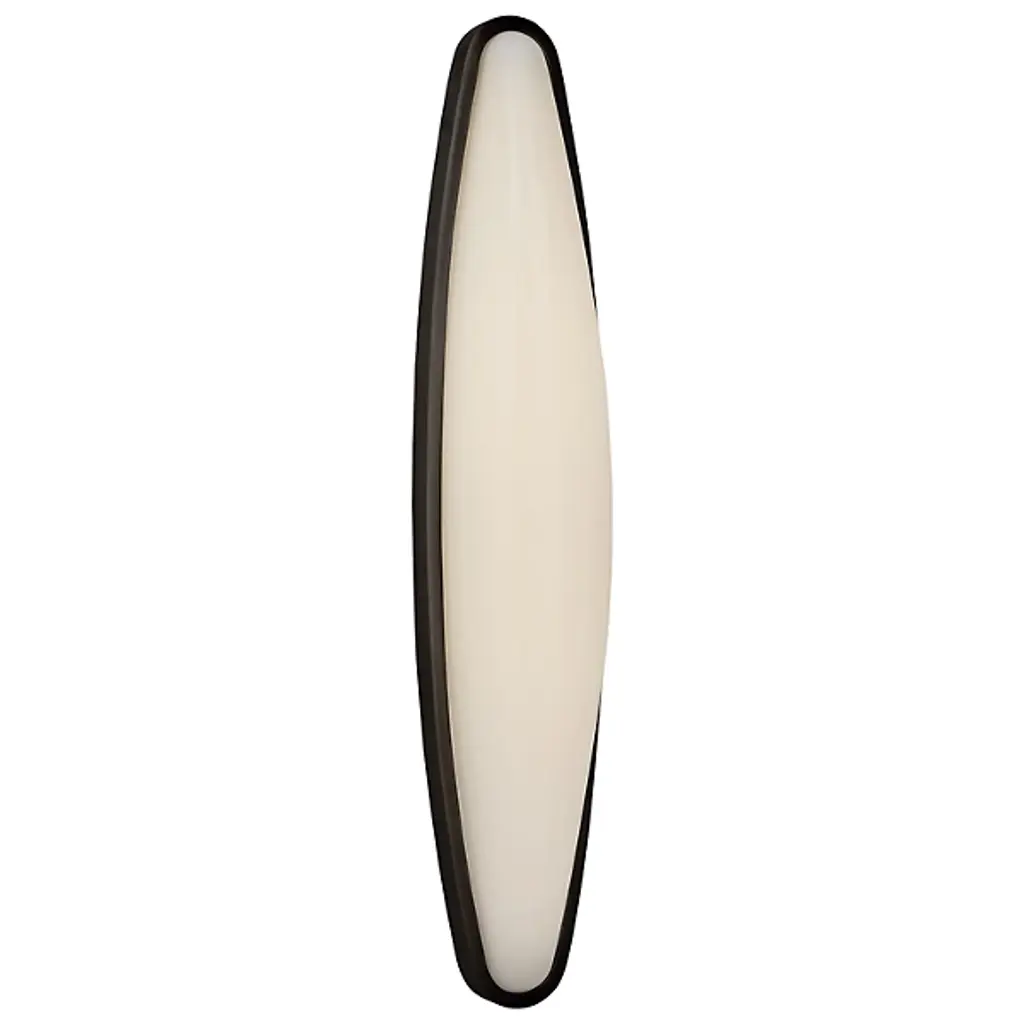 Shower your space in contemporary refinement. The Ezra LED Wall Sconce by Visual Comfort Signature, formerly known as Visual Comfort, features a a seamless, oval-shaped glass shade that is nestled into a low-profile, metal frame. The shade contains an integrated LED lamp, which evokes a warm glow and a welcoming ambiance once lit. Ideal for installation over a vanity mirror, this sconce adds to the décor while producing a plentiful illumination to assist you on your daily routine.
