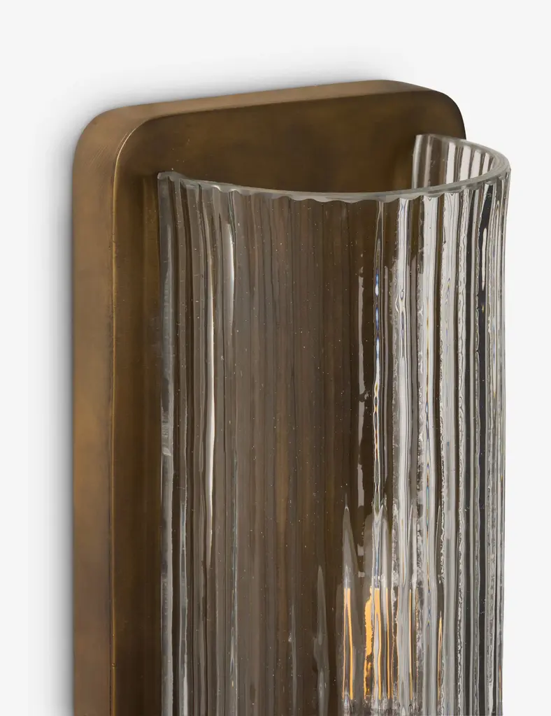 The Eztli sconce offers a sleek take on wall light. Fluted reeded glass sits over a slim backplate, pouring a brilliant pool of light into the room. Flank this sconce light beside a bathroom mirror or in a hallway for elevated illumination.