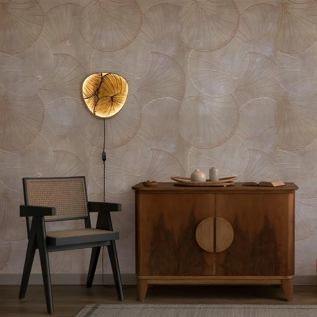 Wall lamps made with the Fabscarte's wallpapers. The paper is mounted on a precious brass fan-shaped support. When turned on the lamp is suggestive of the lunar atmosphere and creates spectacular plays of light.The collection was created based on the success of Selvatica, a lamp, which was the result of the collaboration with the artist Francesco Maluta and winner of the prize “La Grande Bellezza” 2021 (promoter Starhotel, with Fondazione Cologni and OMA Association)- Cable version- Applique versionPlease contact us for US power converters.