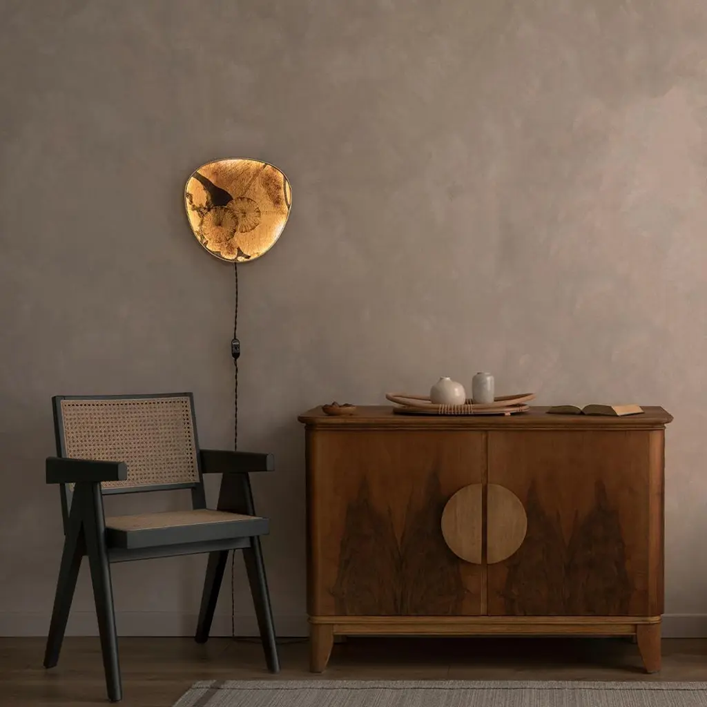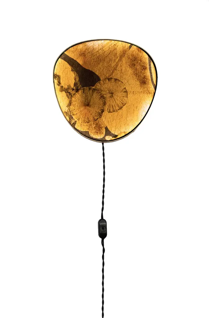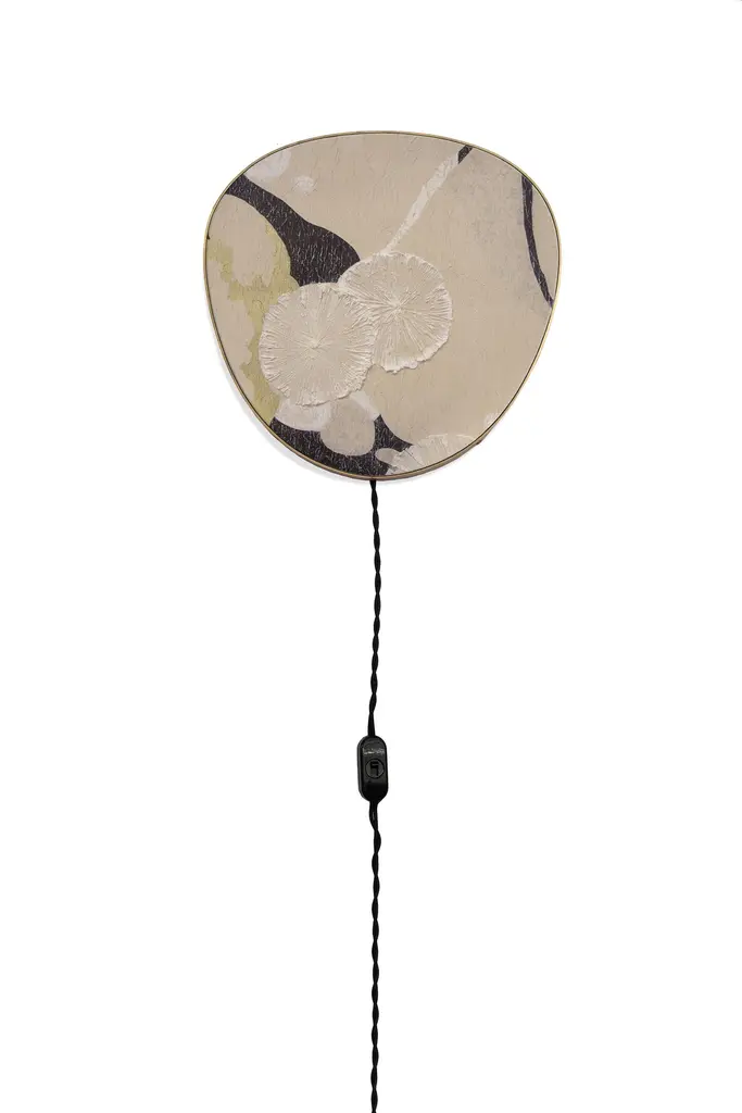 Wall lamps made with the Fabscarte's wallpapers. The paper is mounted on a precious brass fan-shaped support. When turned on the lamp is suggestive of the lunar atmosphere and creates spectacular plays of light.The collection was created based on the success of Selvatica, a lamp, which was the result of the collaboration with the artist Francesco Maluta and winner of the prize “La Grande Bellezza” 2021 (promoter Starhotel, with Fondazione Cologni and OMA Association)- Cable version- Applique versionPlease contact us for US power converters.