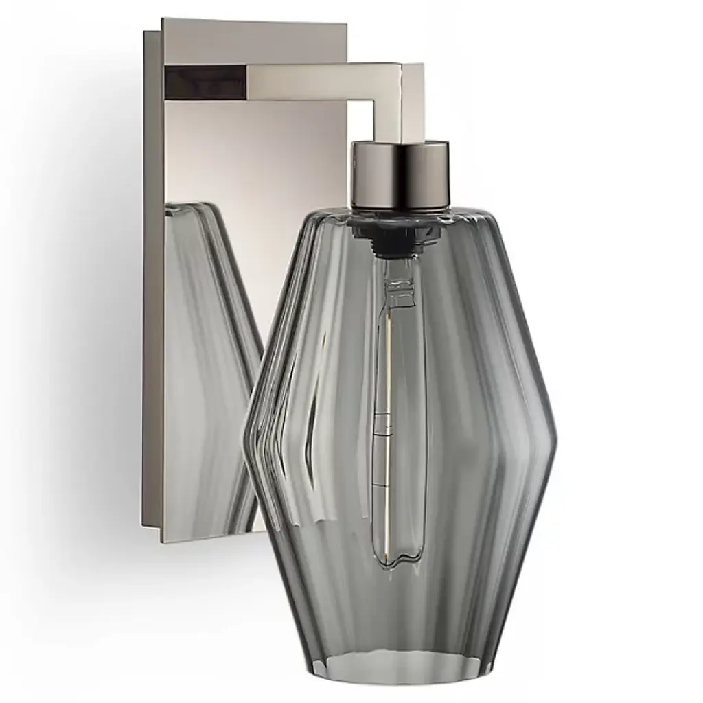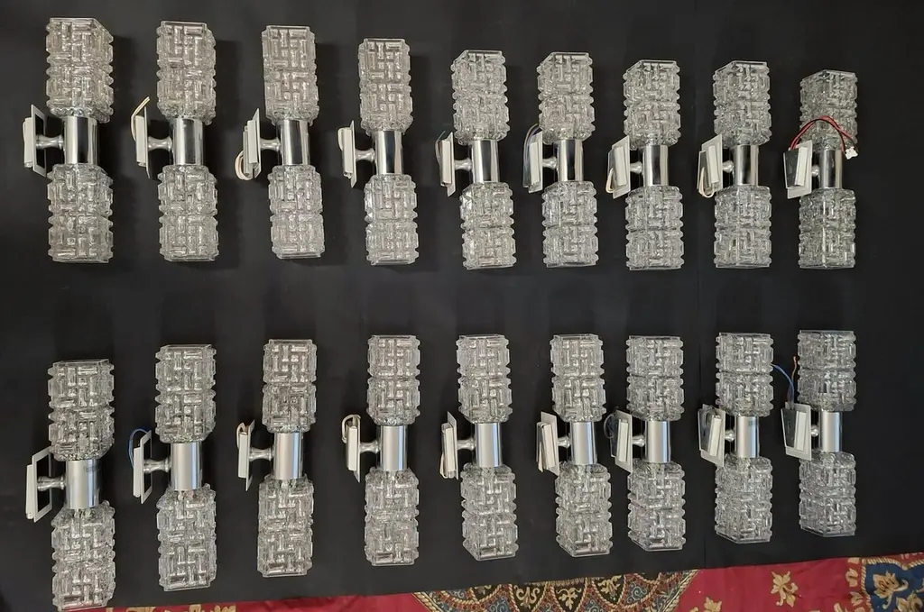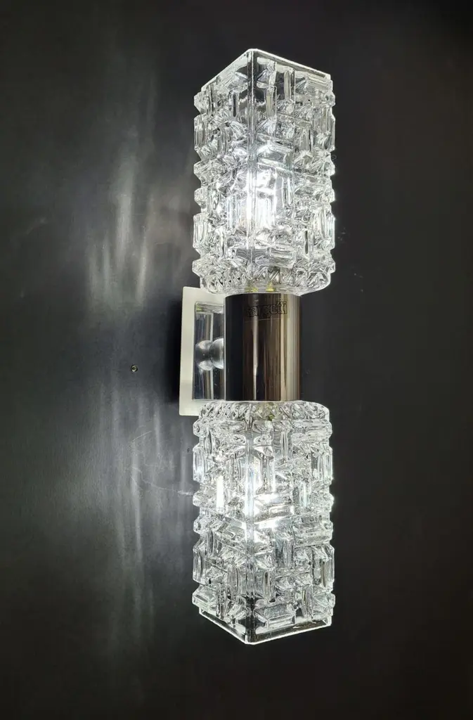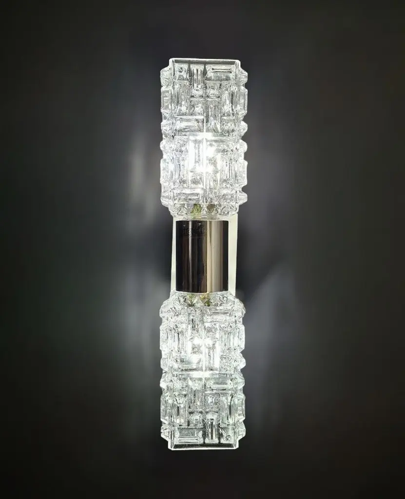Vintage Italian wall light with clear faceted crystal shades / Made in Italy by Targetti, circa 1970sOriginal maker's mark on the frameHeight: 13.5 inches / Width: 3.5 inches / Depth: 4 inches2 lights / E14 type / max 40W each18 available in stock in Italy, price listed is for each itemOrder reference #: FABIOLTD K103