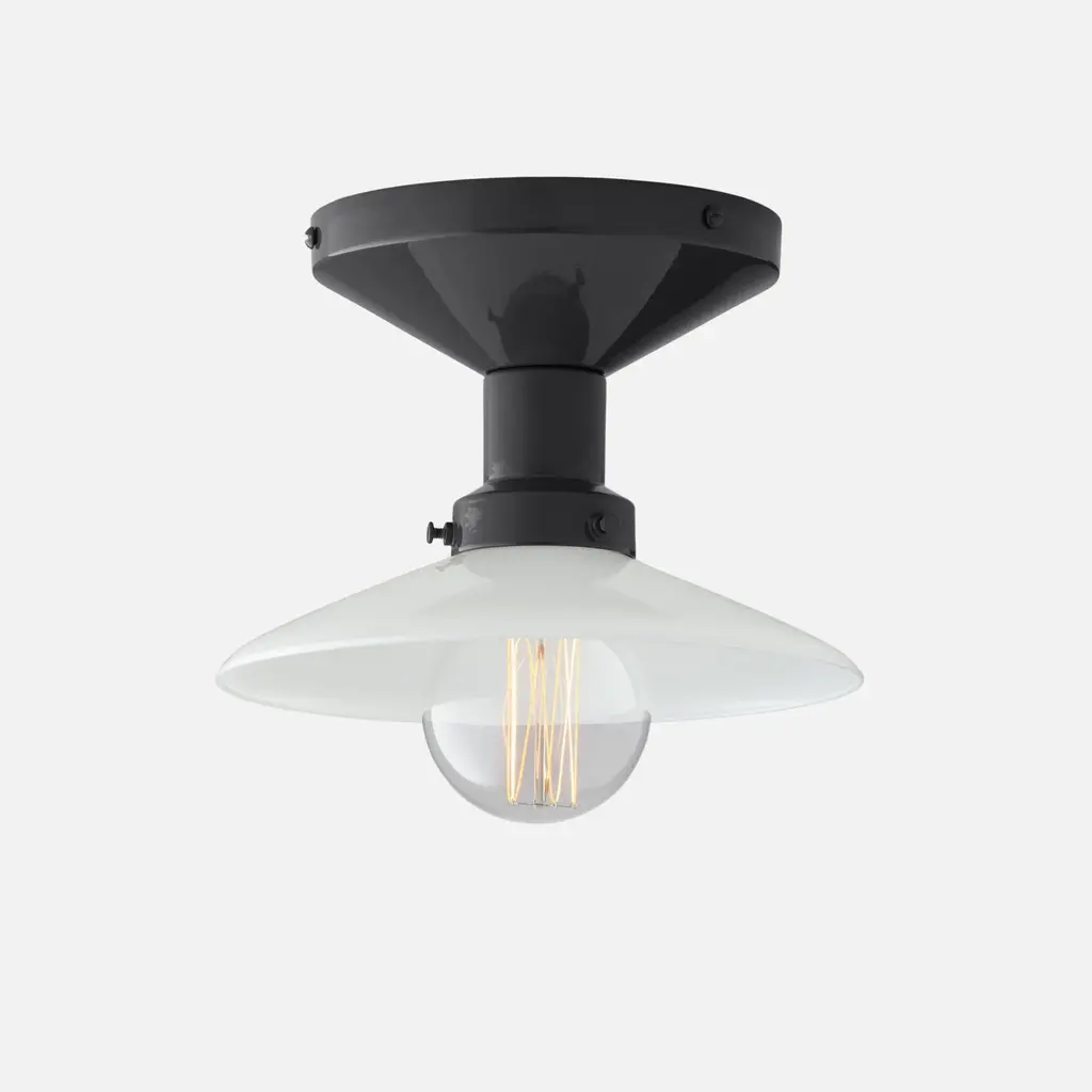 As part of our Benchmade line, the Factory 2 Sconce is a faithful Schoolhouse take on a classic light fixture that brings utilitarian design to indoor and outdoor applications alike. Crafted with hand-spun steel, powder-coated and painted in-house at our Portland factory, and featuring a unique shade inspired by classic jelly jar shades, this wet-rated fixture introduces an extra dose of industrial style to your front porch, backyard patio, bathroom, or front hallway.