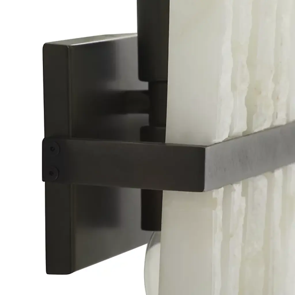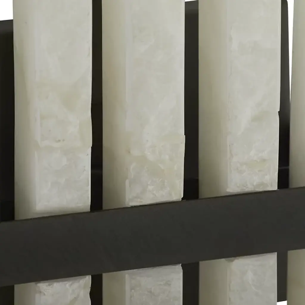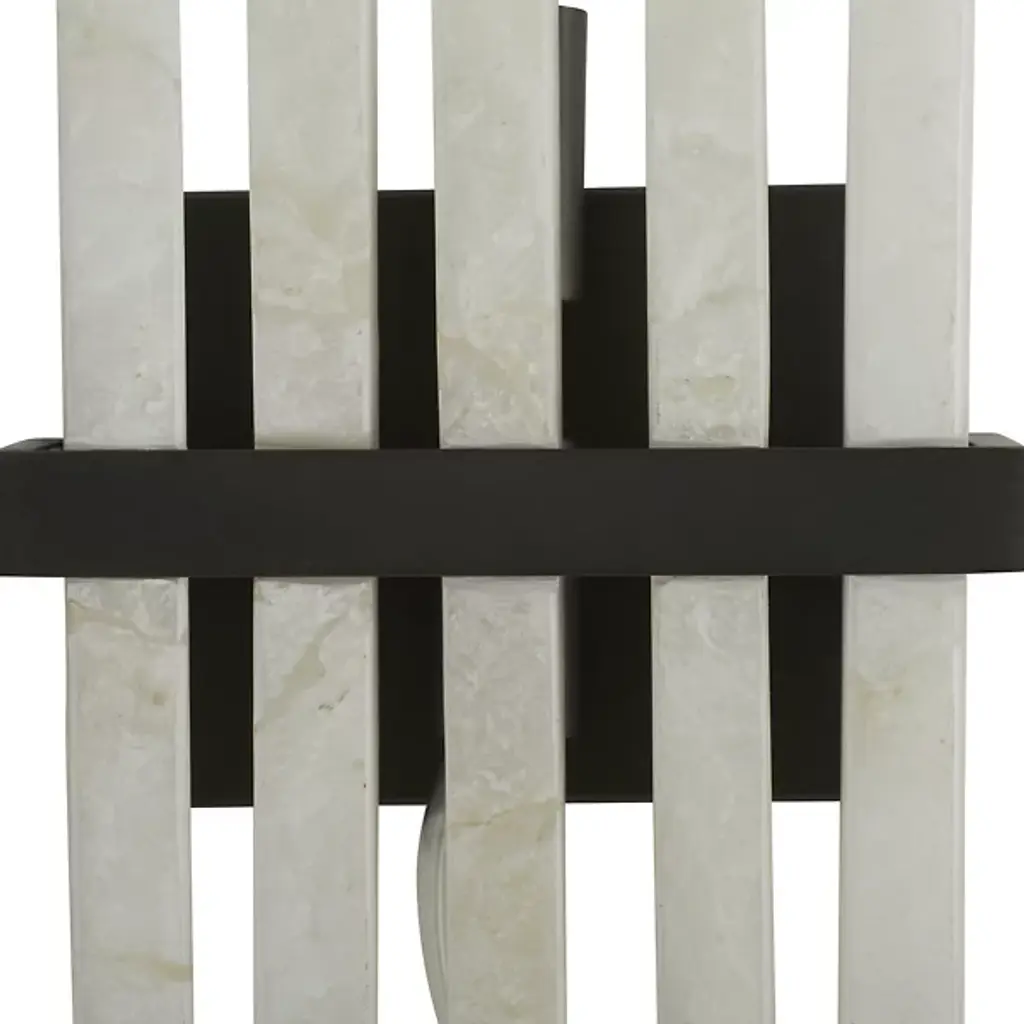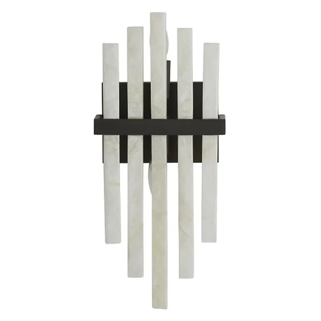 The Fairfax Wall Sconce from Arteriors showcases dramatic alabaster columns arranged in a unique formation. Drawing inspiration from classical pipe organs, this striking fixture features rhythmic columns of alabaster mounted against a sophisticated backplate. Each raw-edged alabaster piece tells its own story through unique variations in the stone's character, creating an interplay of light and texture. While damp-rated for versatility, this dimmable masterpiece requires thoughtful placement in covered outdoor areas to preserve its distinctive finish. The Fairfax Wall Sconce's dramatic vertical composition makes it an architectural statement piece for distinguished interiors.