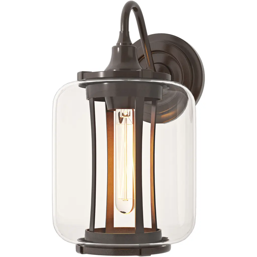 Soft curves define the coastal lanterns of the Fairwinds Outdoor Collection in a variety of sizes and formats appropriate for any exterior setting. the Fairwinds Outdoor Sconce features an internal open handcrafted metal cage structure, within a clear glass shade. Available in a choice of robust Coastal Outdoor Finishes.