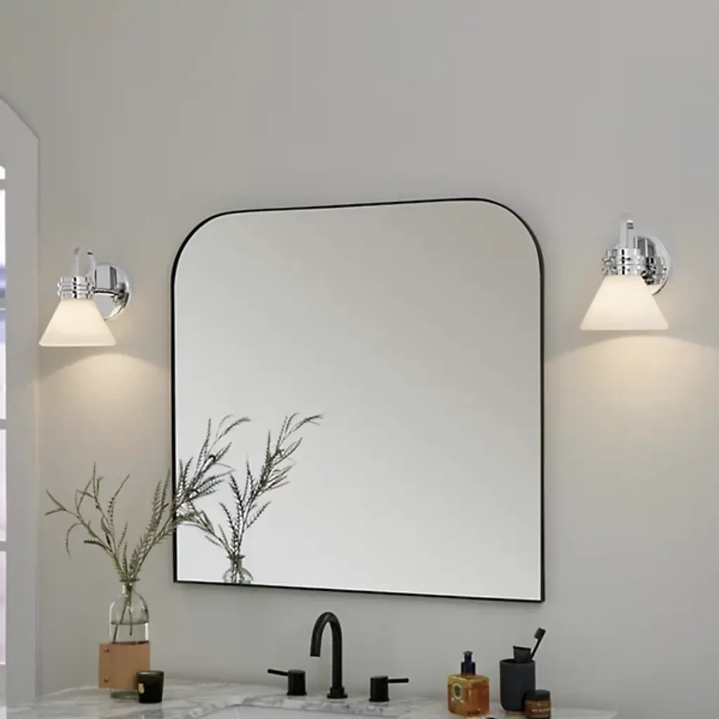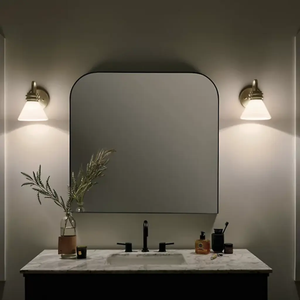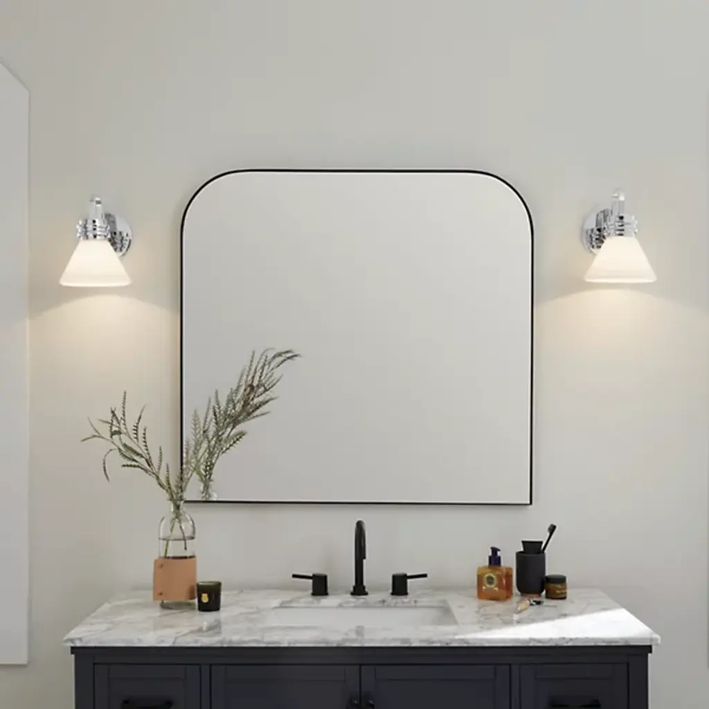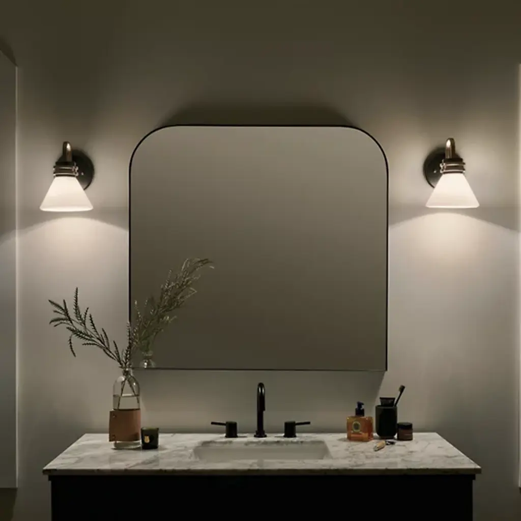 The Farum Wall Sconce by Kichler is a modern and stylish wall sconce that will add elegance to any room. This piece features a clean and simple design with a stepped frame and an opal glass shade. Its clean frame showcases subtle stepped detailing, and its Opal glass wonderfully illuminates. It is also dimmable so that you can create the perfect mood for any occasion. Ideal for a bedroom, bathroom, home office, or reading nook.