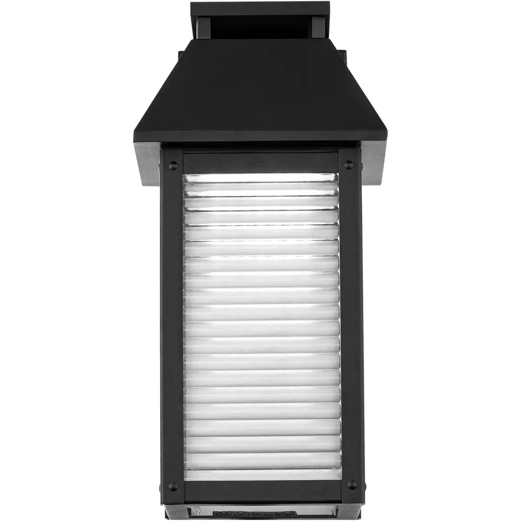 Traditional elegance updated with LED technology. An open-bottom design for easy maintenance as well as for functional downlight illumination. The Faulkner outdoor sconce uses V-groove glass diffusers on the front and sides, and reflects downward projected light off a stainless steel backplate to create the illusion of a louvered light. Energy efficient integrated LED's provide a long-lasting maintenance-free bright and even illumination. This exterior fixture blends traditional lines and design with a unique, diffused projection of light. Available in a weather resistant black finish, this luminaire comes in 2 sizes: 14in and 18 in.