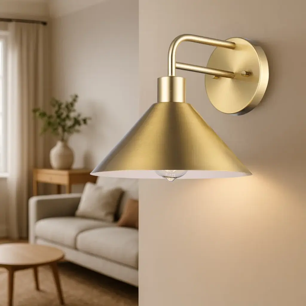 Introducing the 1-light industrial wall sconce, a stylish lighting solution for any space. This sconce features a sleek dome metal shade that exudes industrial charm. Designed to accommodate 1 medium base E26 bulb (not included), the provides ample light for your needs. Its damp-rated location makes it perfect for spaces like bathrooms, ensuring durability and style in damp environments. Illuminate your space with the wall sconce today!