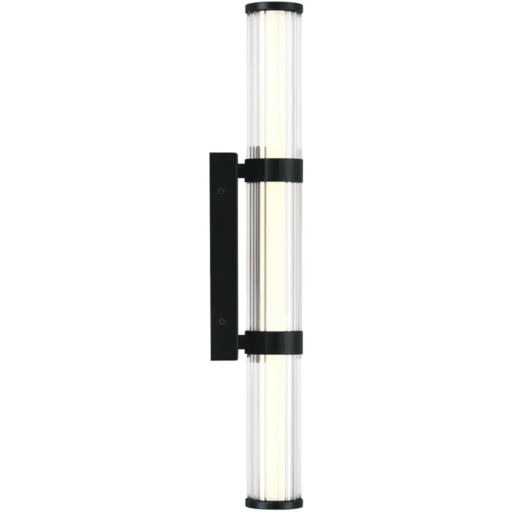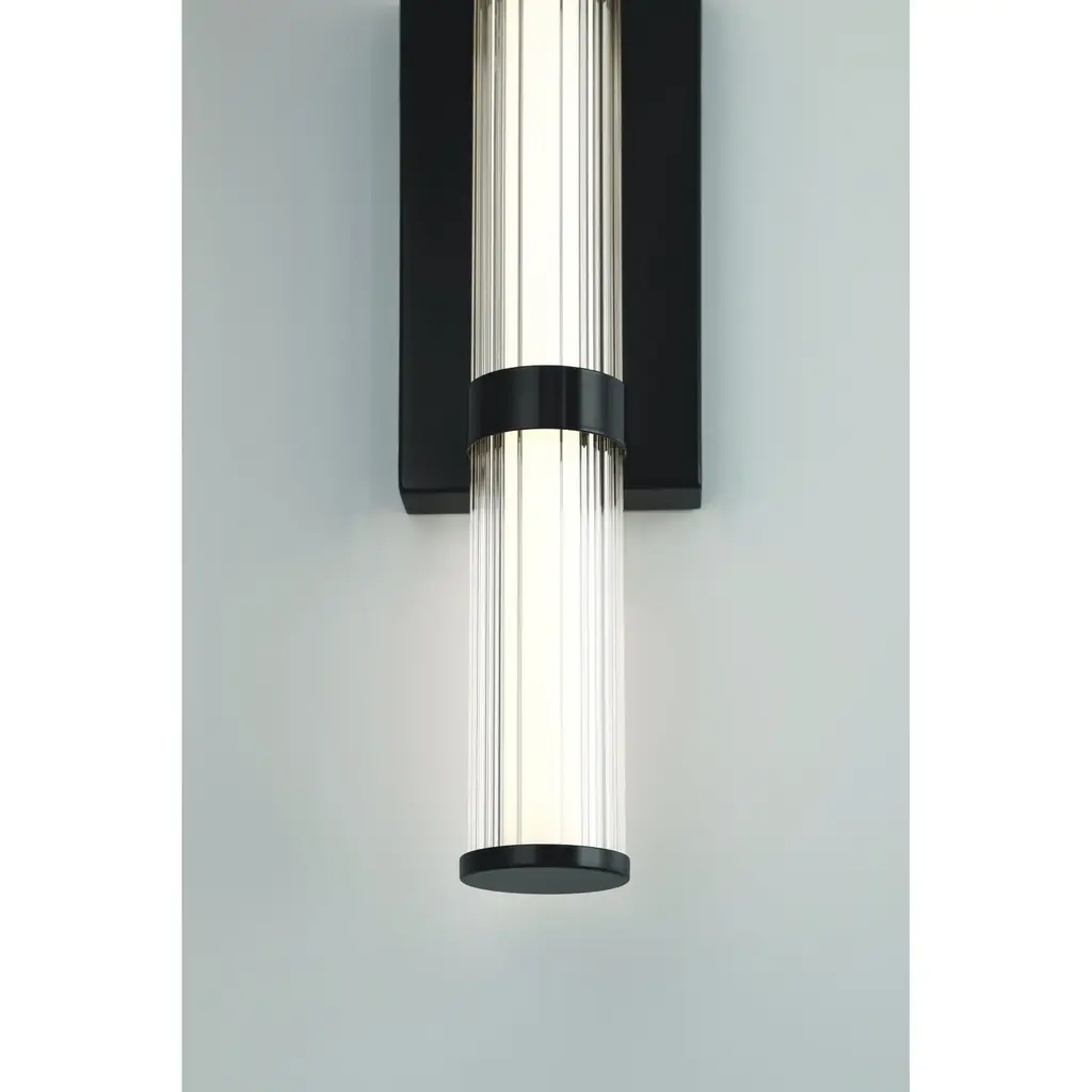 To soften the sliver of linear light, ribbed glass has been sleeved around the white beam, thereby delivering a welcoming flank to doorways and entries. The simple clarity of design will add striking panache to townhomes, buildings and residences.
