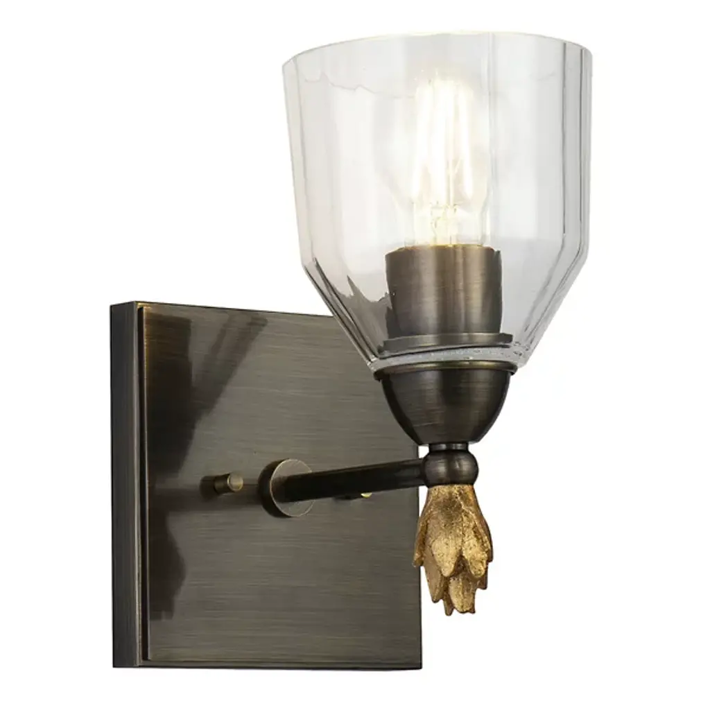 The Felice Flame Finial Wall Sconce from Lucas McKearn is a decorative luminaire evoking a gentle flame while turned off and on. This transitional piece sets itself apart through its attention to detail. It sports a compact backplate for mounting in tight spaces. Its lamp holder draws the eye as a flame-like finial streams at the base. A striated glass rests over the holder, catching fine highlights while on. The piece turns on to generate a warm aura.
