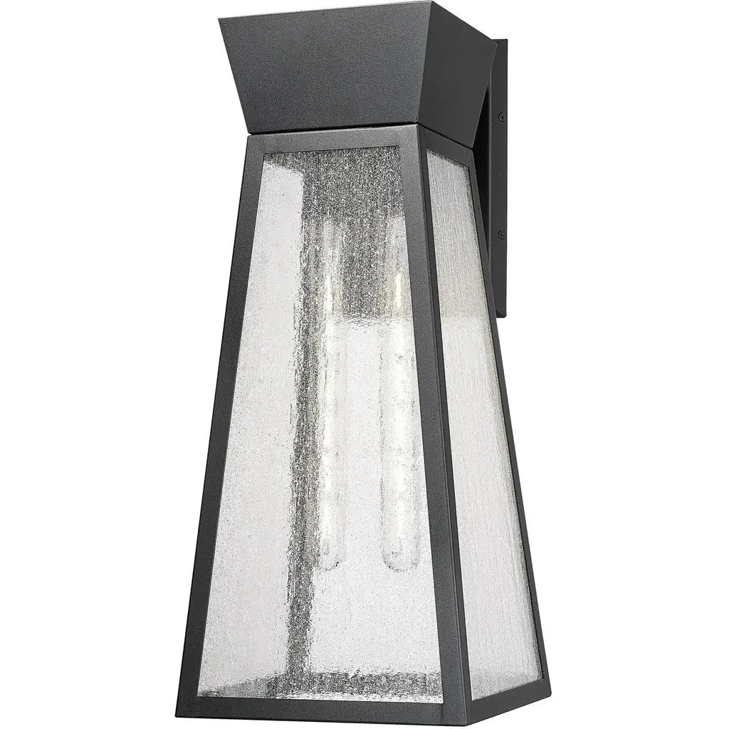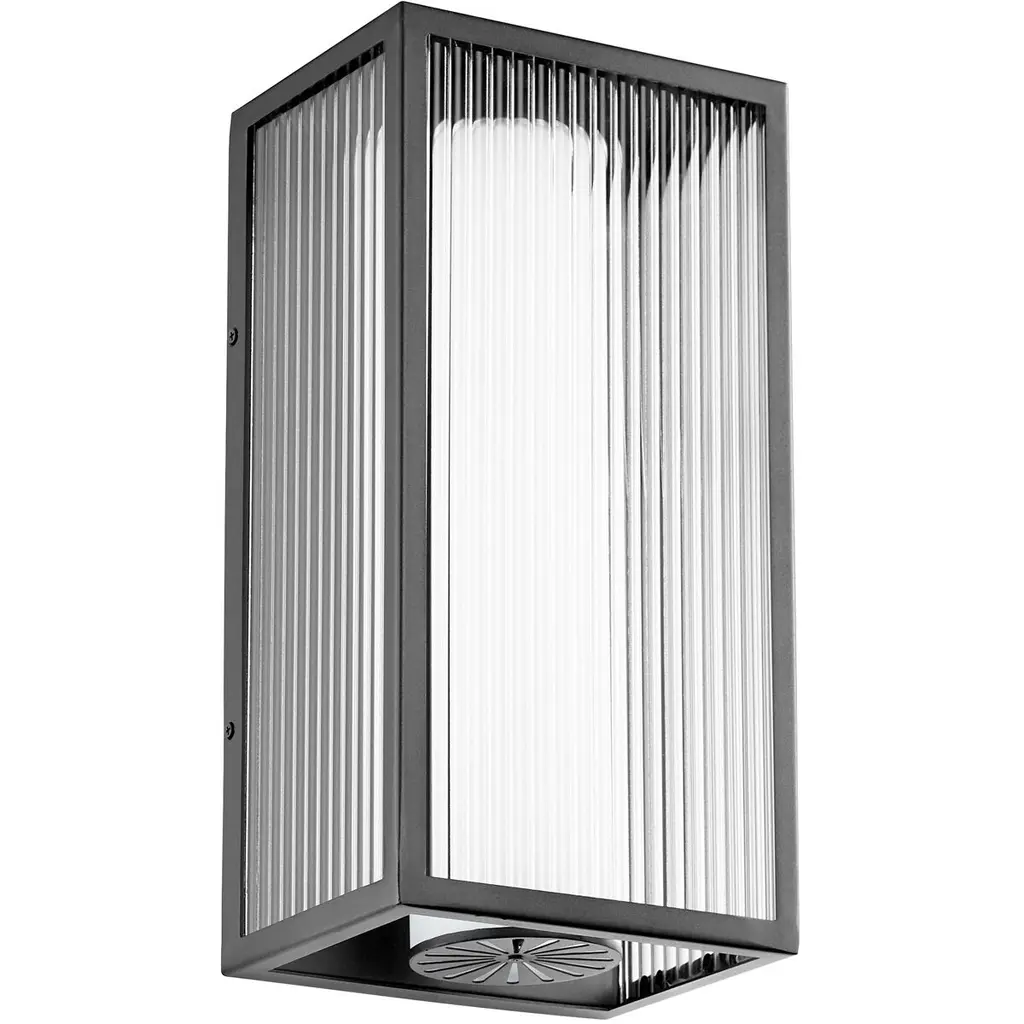 Achieve the stylish and peaceful home environment you've been waiting for with this beautiful wall light. The rectangular matte black frame's intelligent design is just right for illuminating any outdoor space in need of illumination. The frame holds elongated, rippled glass panels through which a warm, guiding glow will shine.