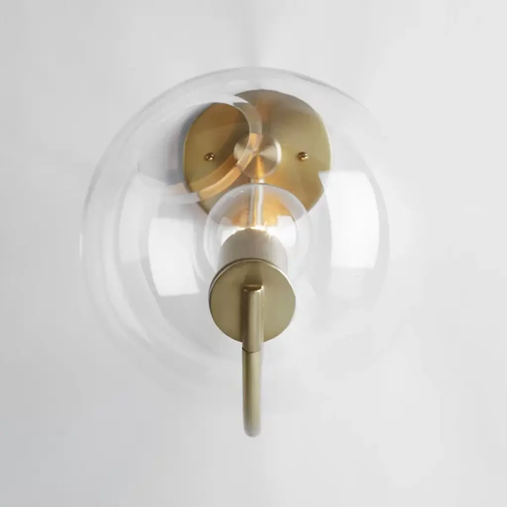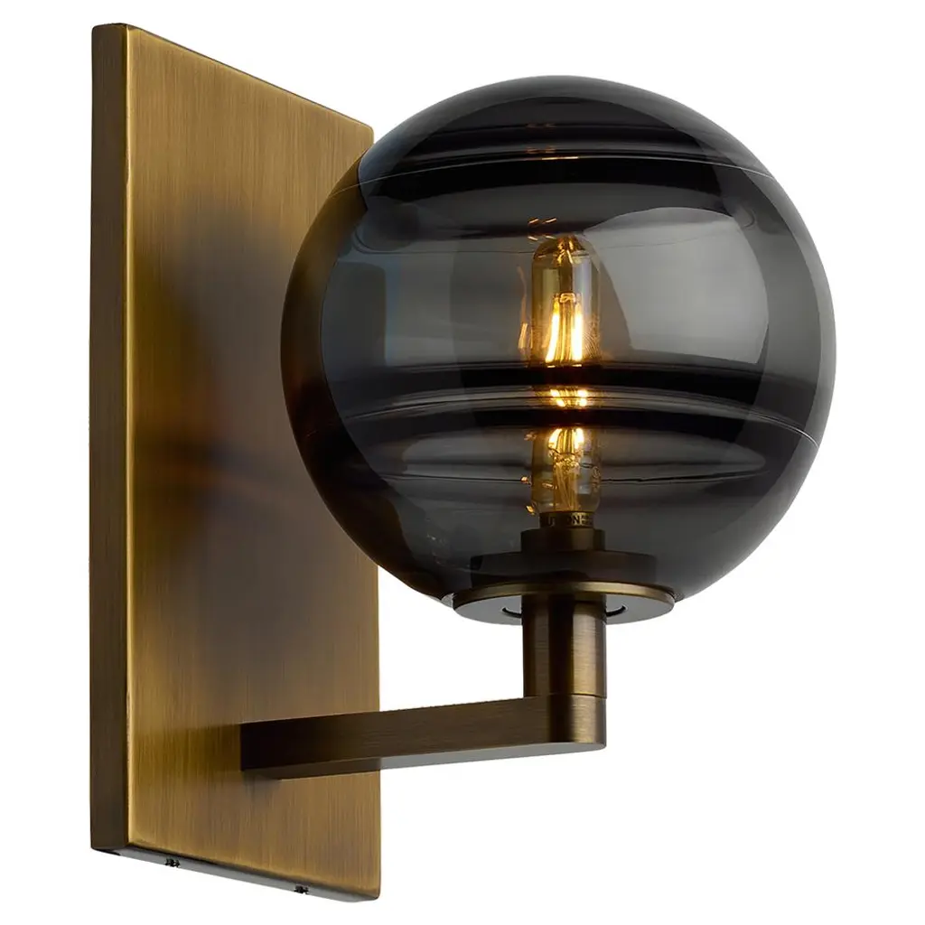 The Fiddlehead Wall Sconce from Roll & Hill is an elegant and expressive piece named after a sprouting fern. From designer Jason Miller, this simple fixture displays a delicate air as it illuminates from inside a handblown glass sphere. A circular metal wall mount steadies the piece and sends a curving plated steel arm around one side of the glass, ending at the opposite side with a cylindrical socket and lamp.