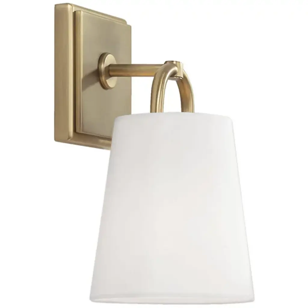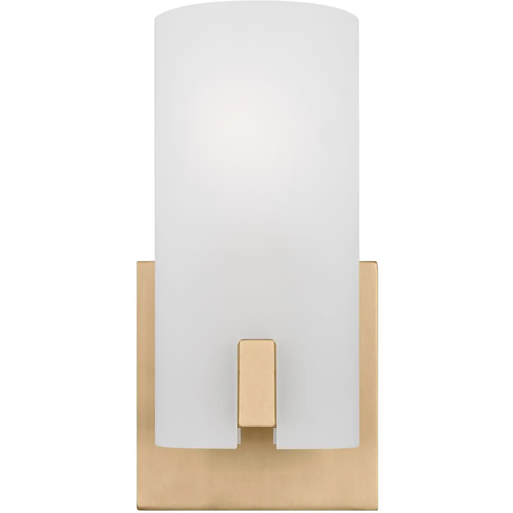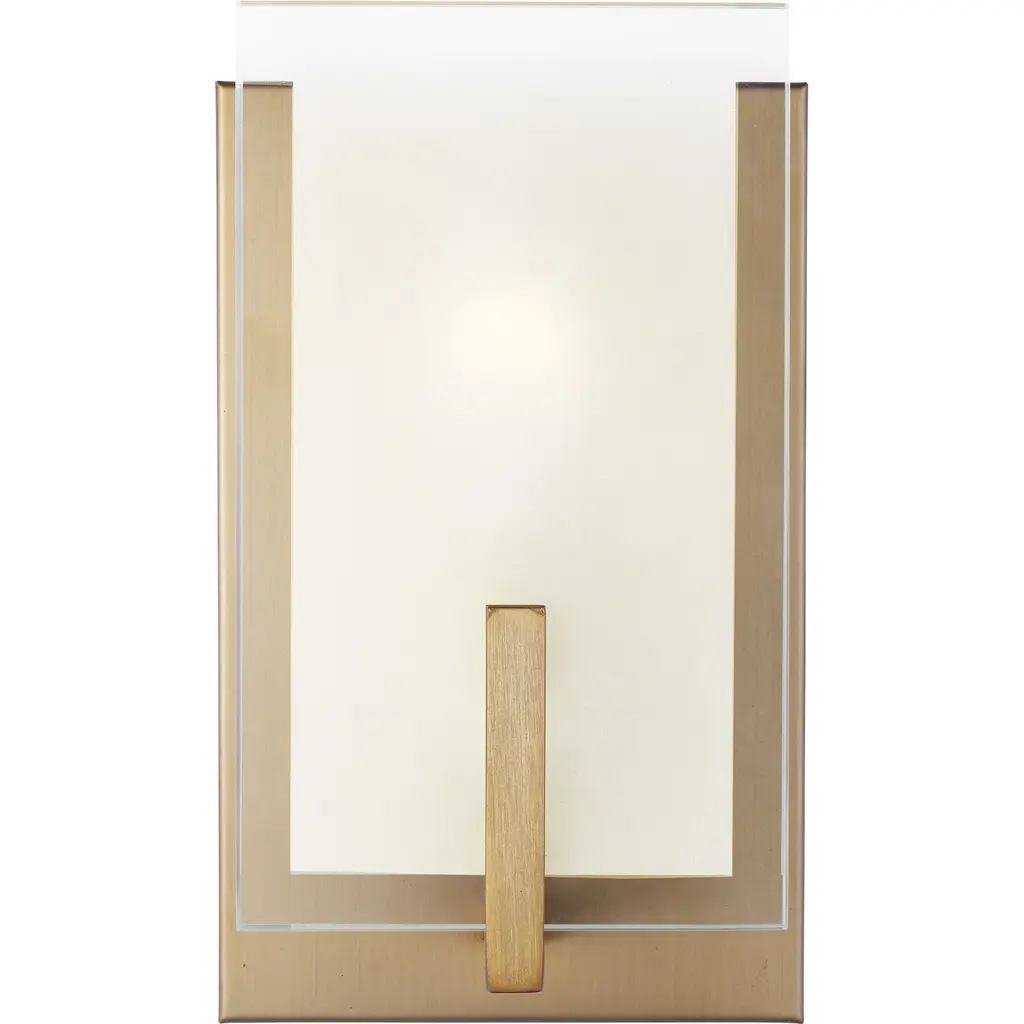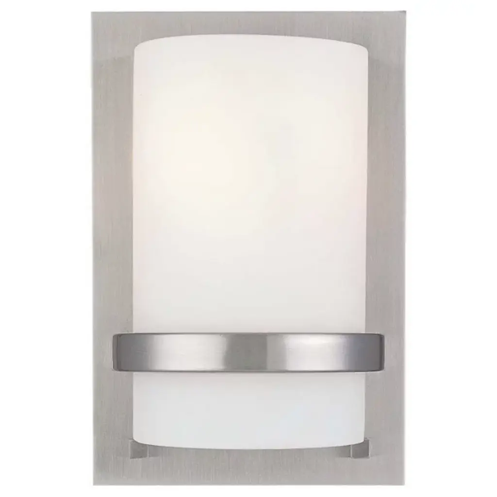 The Minka-Lavery Fieldale Lodge Wall Sconce features a simple yet effective composition and mixture of materials. The opal glass shade is set in front of a rectangular backplate, held in place by a single horizontal band. The illumination is diffused through the opaque glass, creating an ambient lit atmosphere with a sense of modern minimalist style.