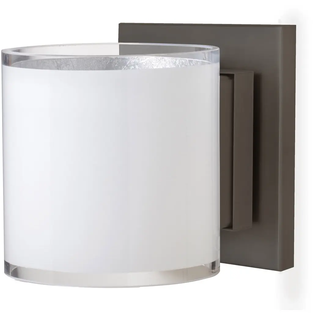 The Minka-Lavery Fieldale Lodge Wall Sconce features a simple yet effective composition and mixture of materials. The opal glass shade is set in front of a rectangular backplate, held in place by a single horizontal band. The illumination is diffused through the opaque glass, creating an ambient lit atmosphere with a sense of modern minimalist style.